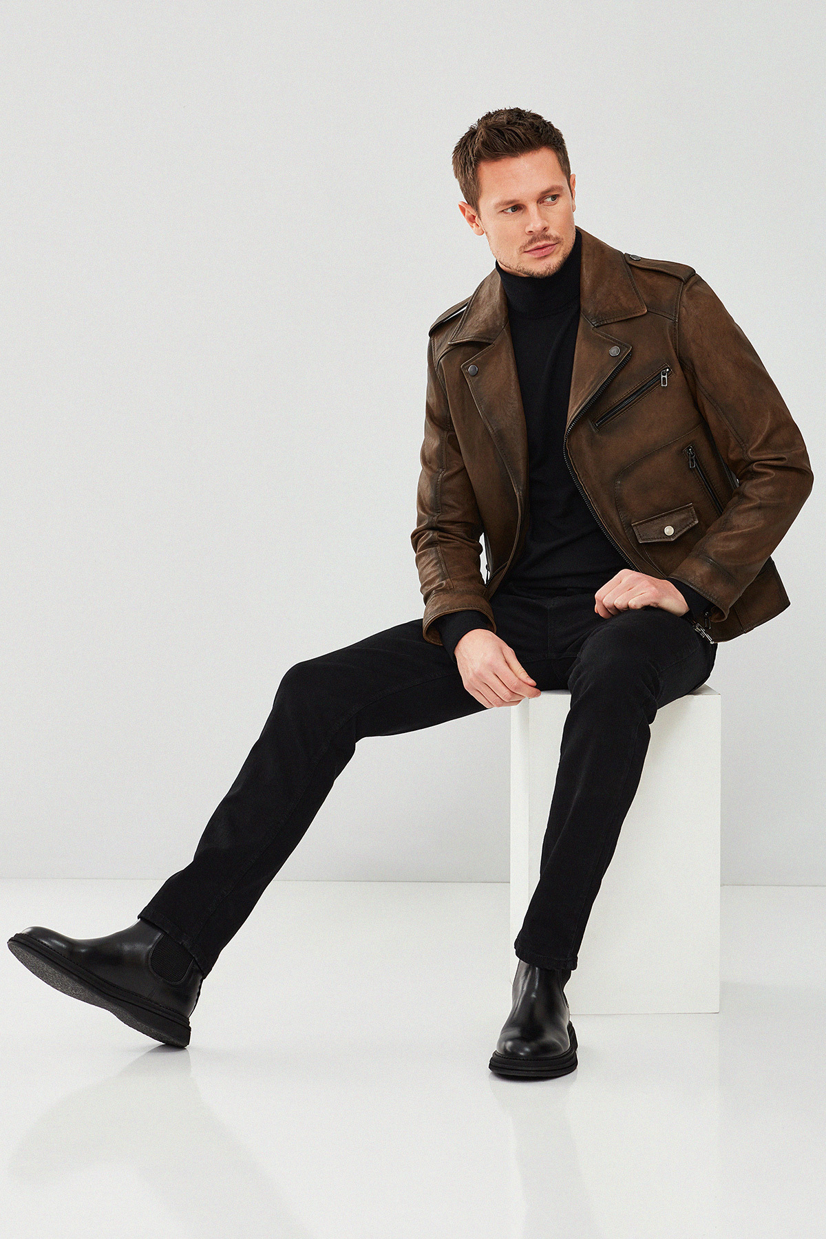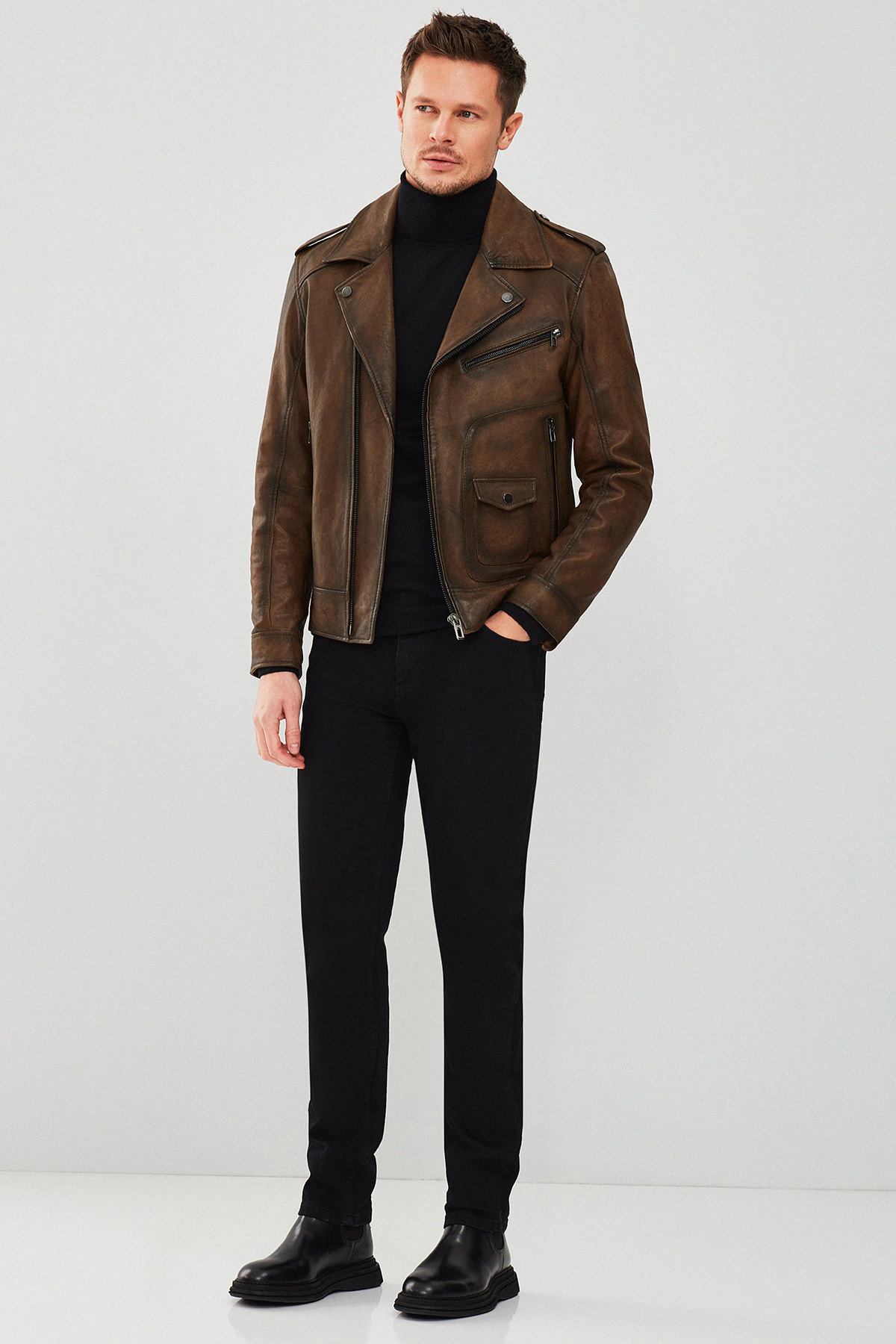 خرید اینترنتی کاپشن چرمی مردانه قهوهای موتورسوار Carter مدل 23WGD6490M5 برند دریمود Derimod اورجینال از Derimod نمایندگی و فروشگاه معتبر ترکیه