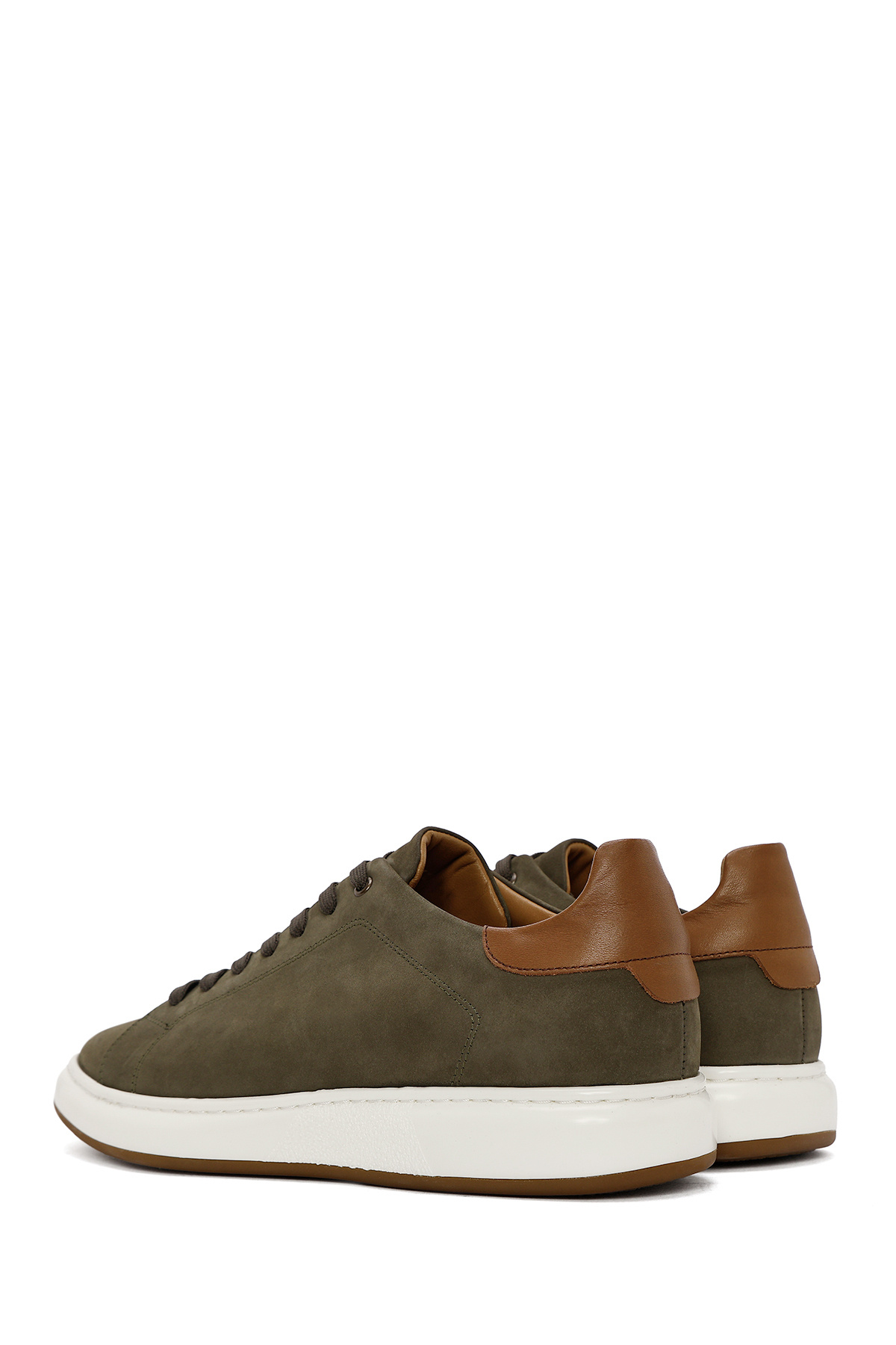 کفش کتانی مردانه چرم نبوک بنددار سبز رنگ حاوی چرم گاوی است.