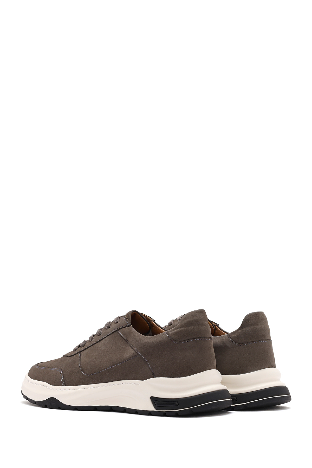 کفش کتانی مردانه چرم نبوک بنددار خاکستری حاوی چرم گاوی است.