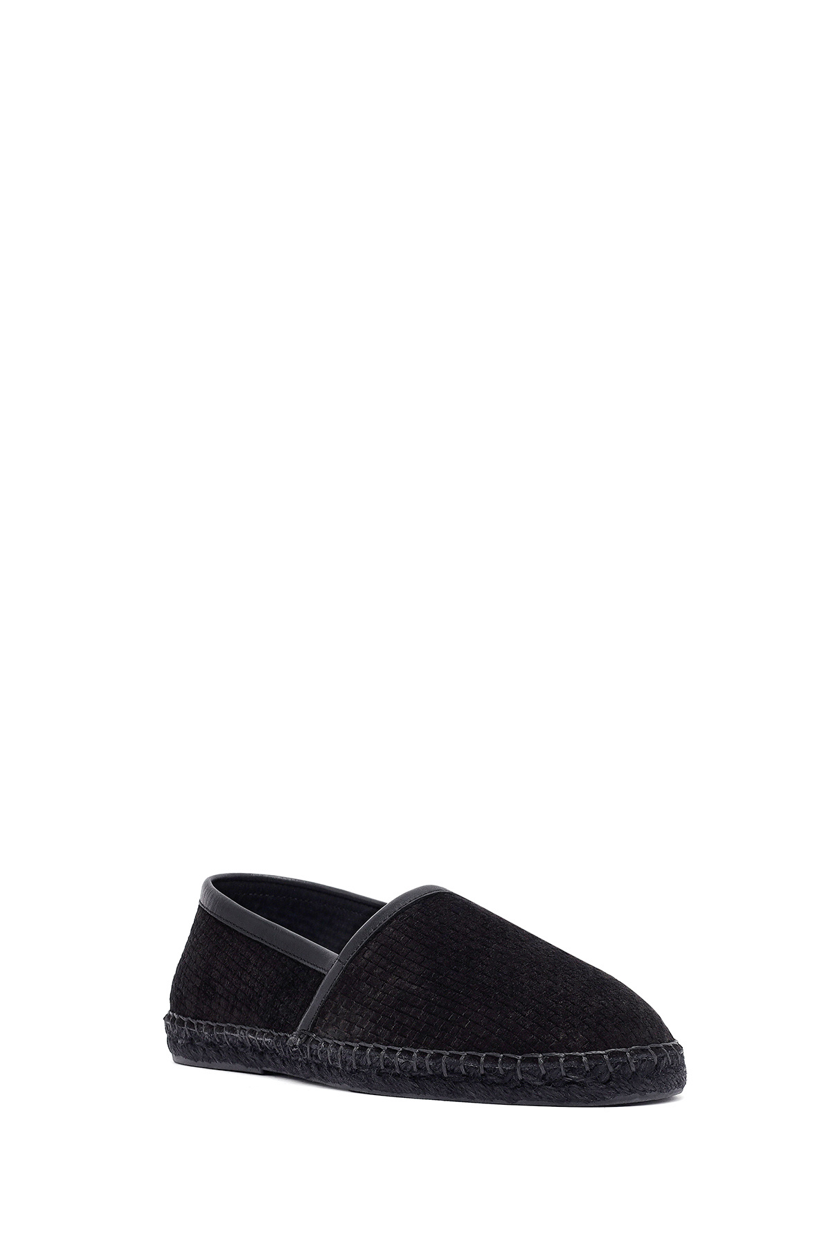 کفشهای اسپادریل مردانه از جنس چرم جیر مشکی، حاوی چرم گاوی هستند.
