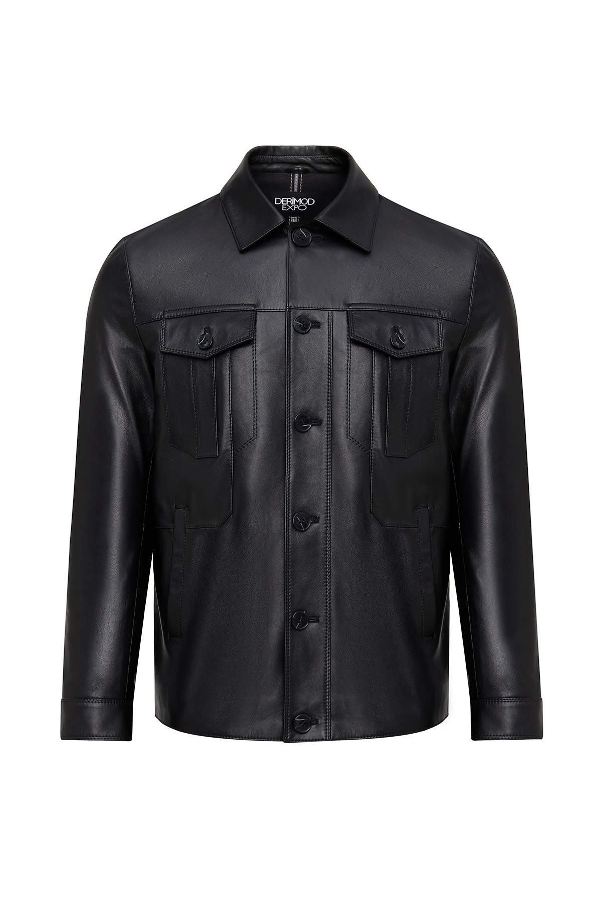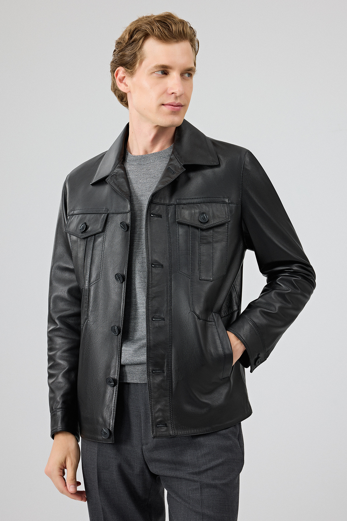 کاپشن چرمی مشکی مردانه Axel دارای پوست گوسفند است.