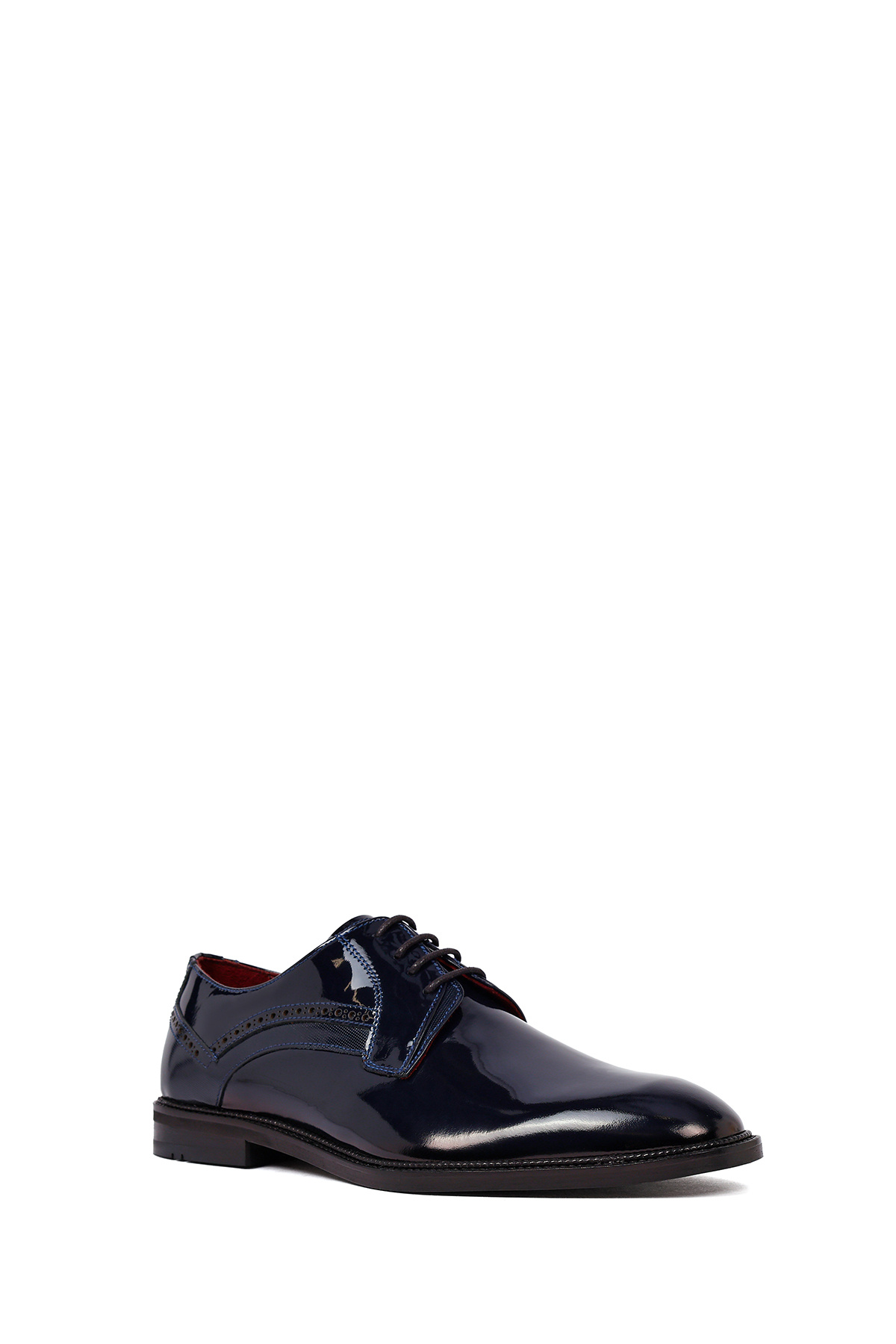 کفش کلاسیک مردانه چرم ورنی بنددار سرمهای. حاوی چرم گاو.