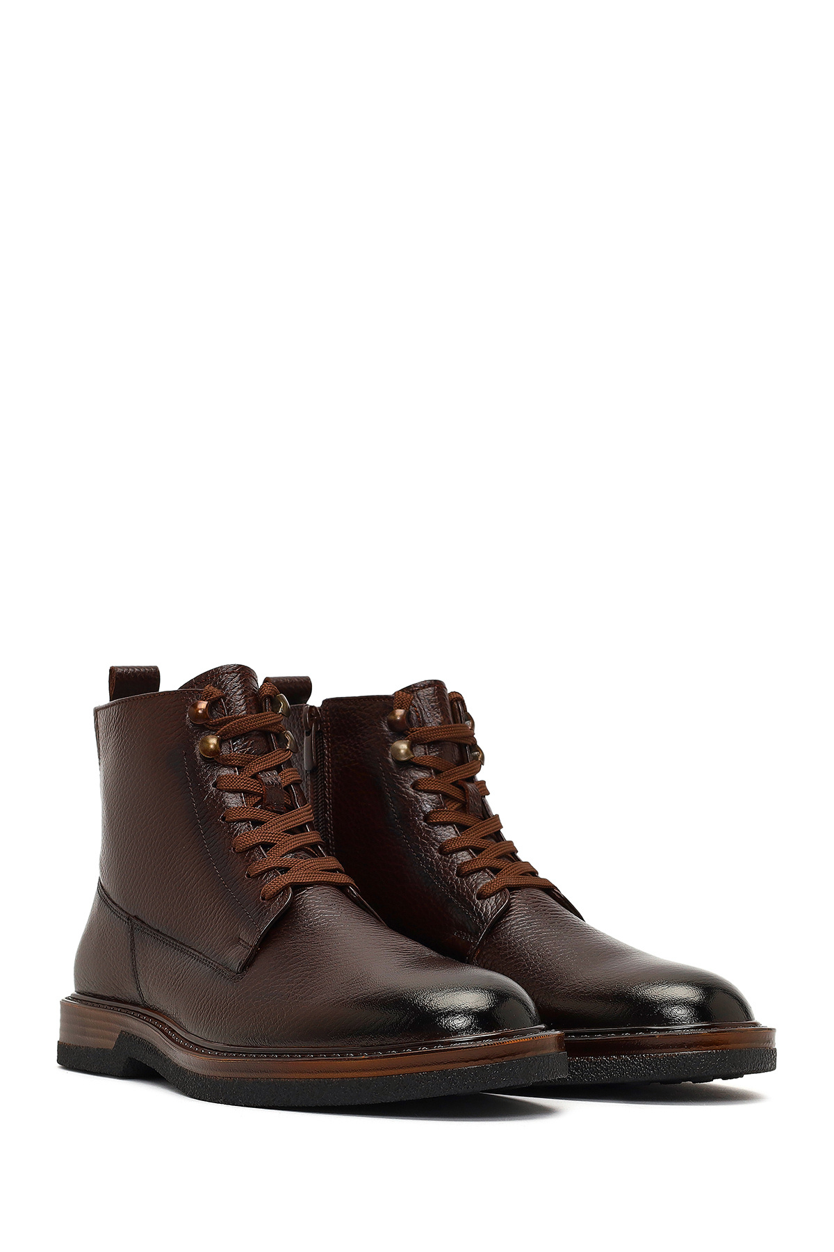 چکمه مردانه قهوهای بنددار، زیپدار، مناسب برای استفاده روزمره، ساخته شده از چرم گاو.