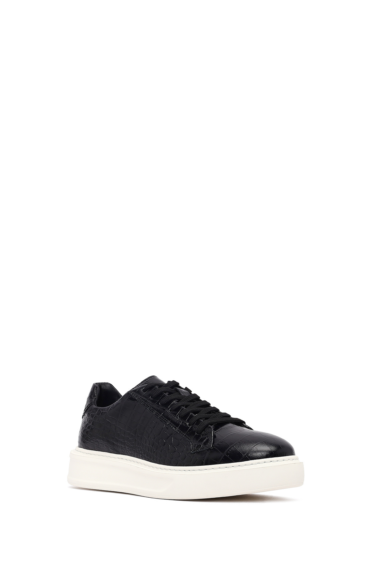 خرید اینترنتی کفش کتانی مردانه چرم اصل طرح کروکودیل مشکی، کفش ورزشی زمستانی 25WFD6100E3 برند دریمود Derimod اورجینال از Derimod نمایندگی ترکیه