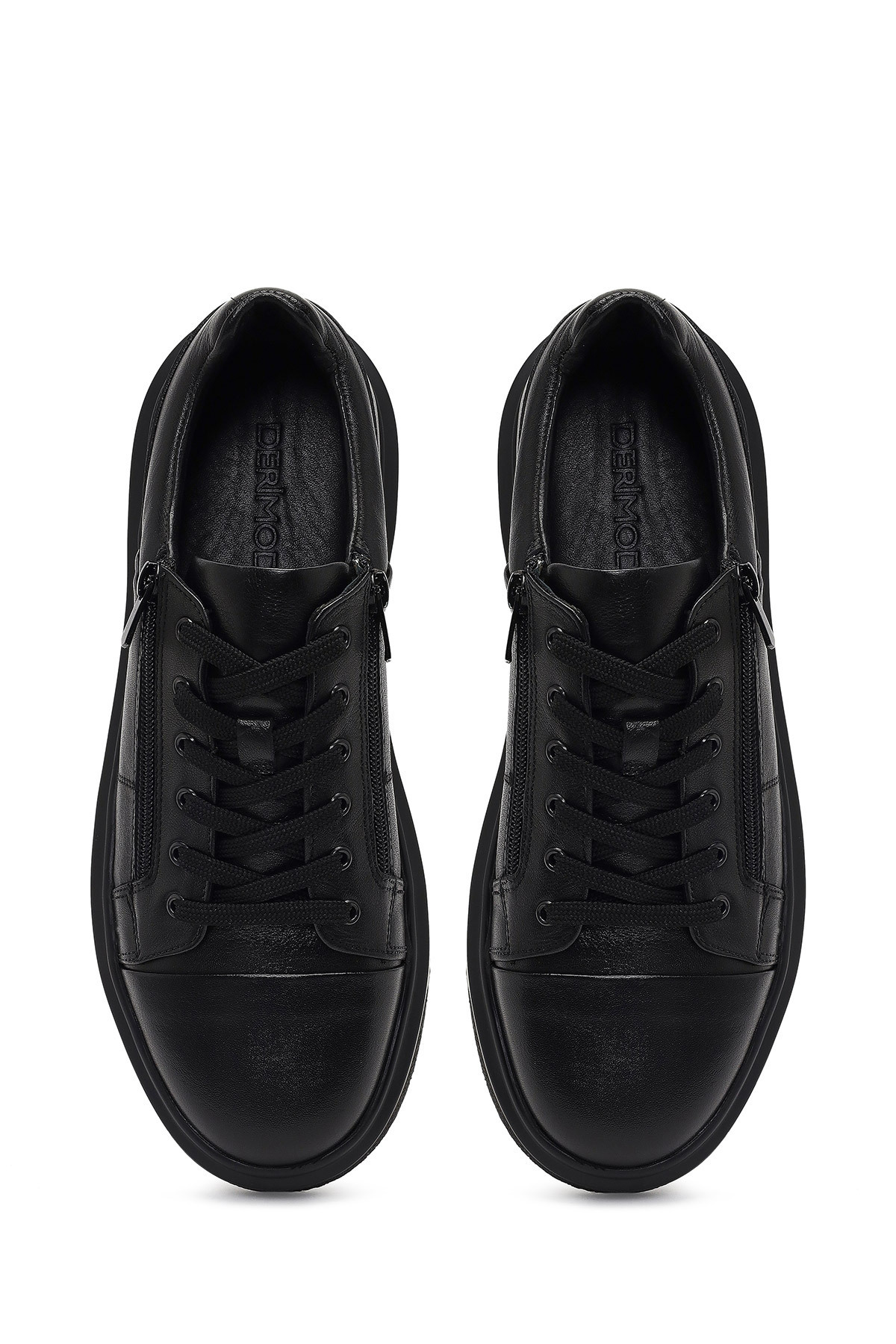 خرید اینترنتی کفش کتانی مردانه مشکی بنددار، زیره ضخیم، چرم اصل، کفش ورزشی زمستانی 25WFD612918 برند دریمود Derimod اورجینال از Derimod نمایندگی ترکیه
