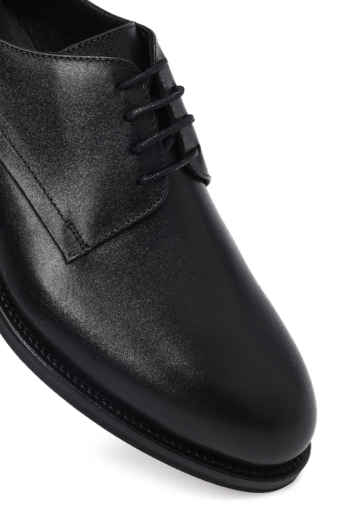 کفشهای چرمی کلاسیک مردانه مشکی بنددار، دارای چرم گاوی هستند.
