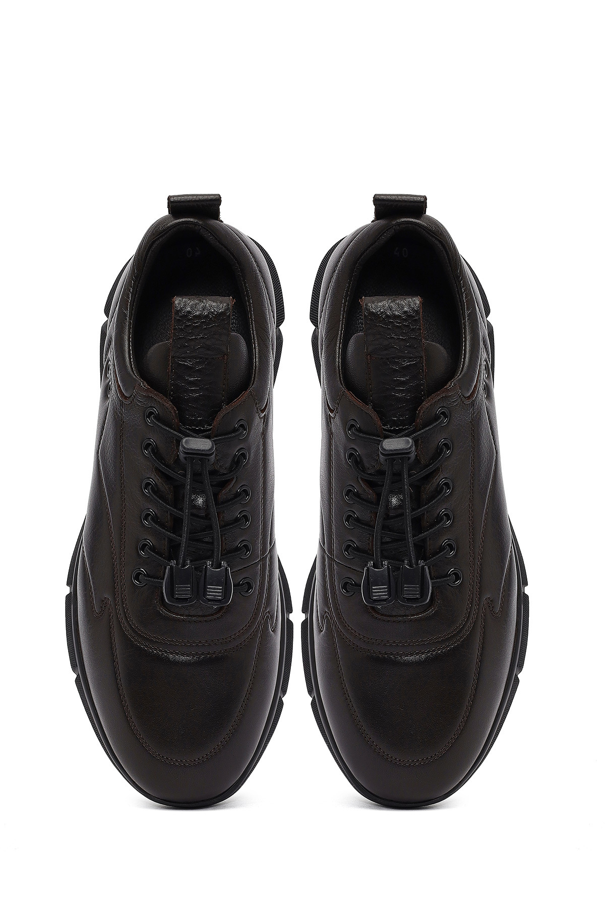 کفشهای مردانهی قهوهای بنددار چرمی غیررسمی حاوی چرم گاوی هستند.