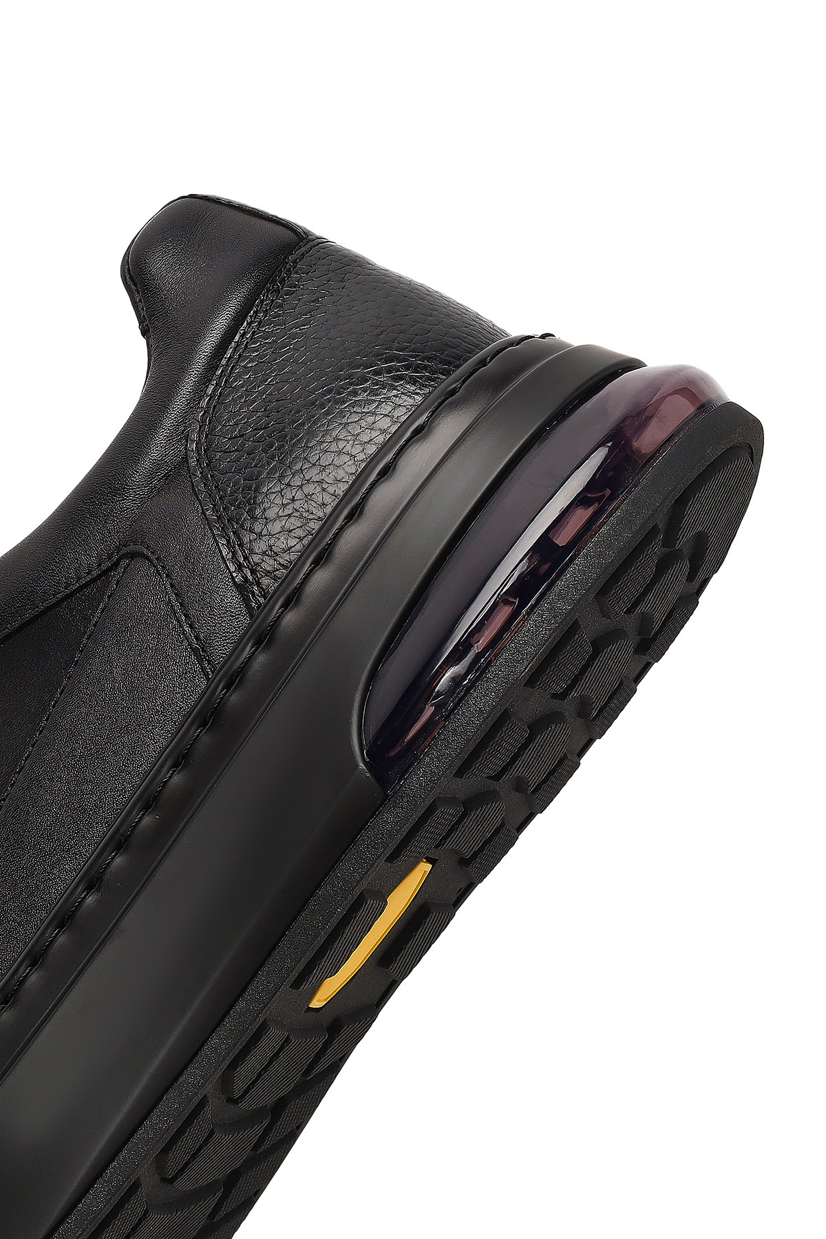 این کفش کتانی مردانه مشکی بنددار و چرمی با کفی ضخیم، دارای چرم گاوی است.