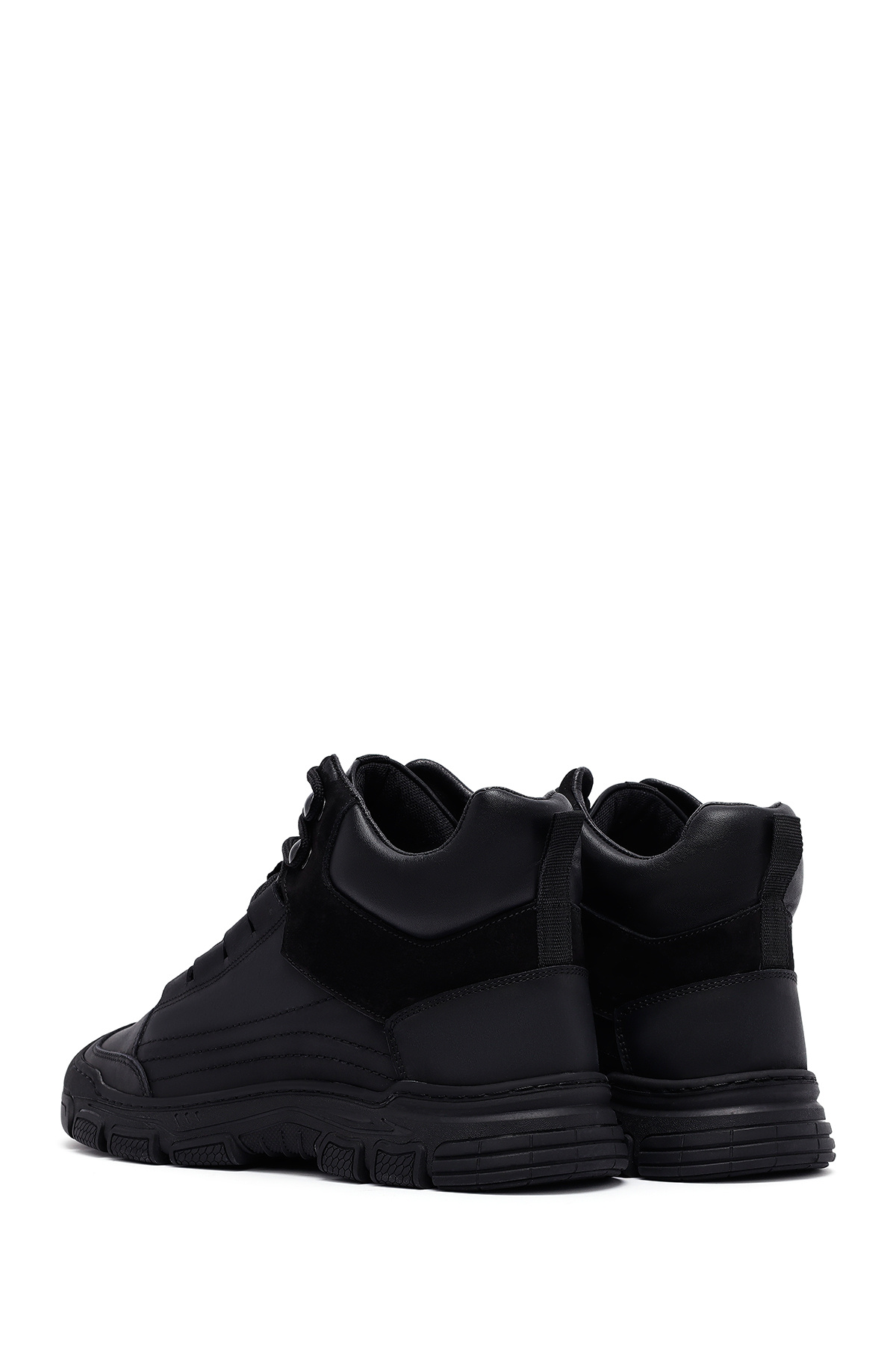 چکمههای راحتی مردانه چرمی مشکی بنددار، ساخته شده از چرم گاو.