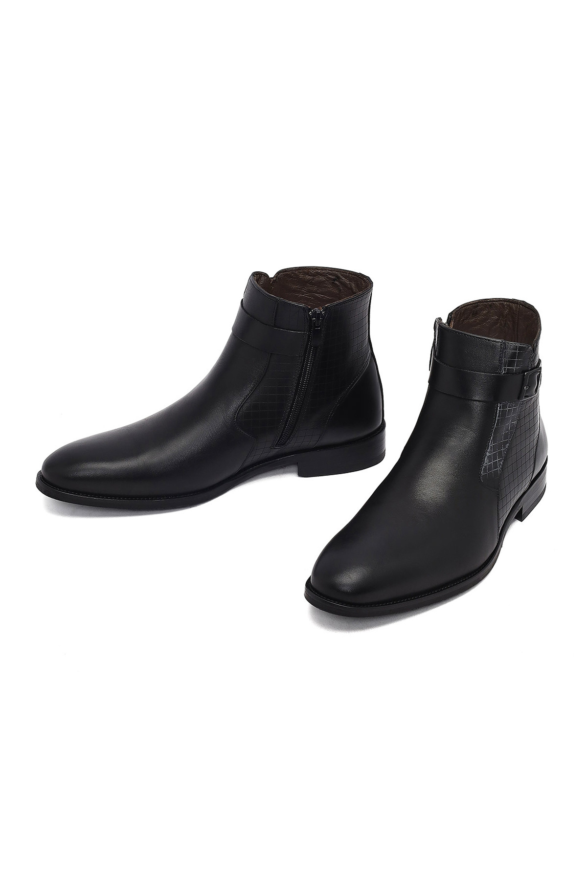 چکمه کلاسیک چرمی زیپدار مردانه مشکی سگکدار، حاوی چرم گاوی.