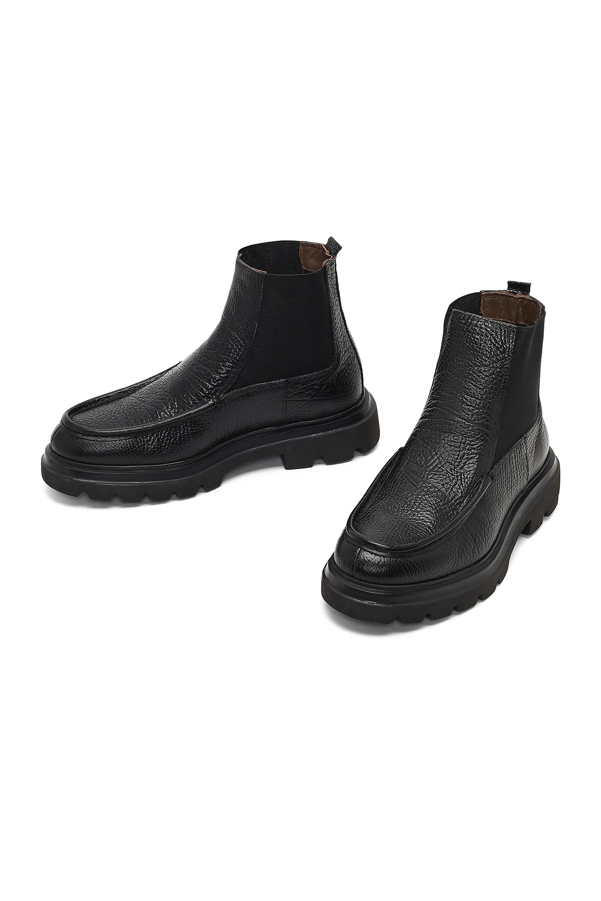 چکمههای چلسی مردانه چرم مشکی دارای چرم گاوی هستند.