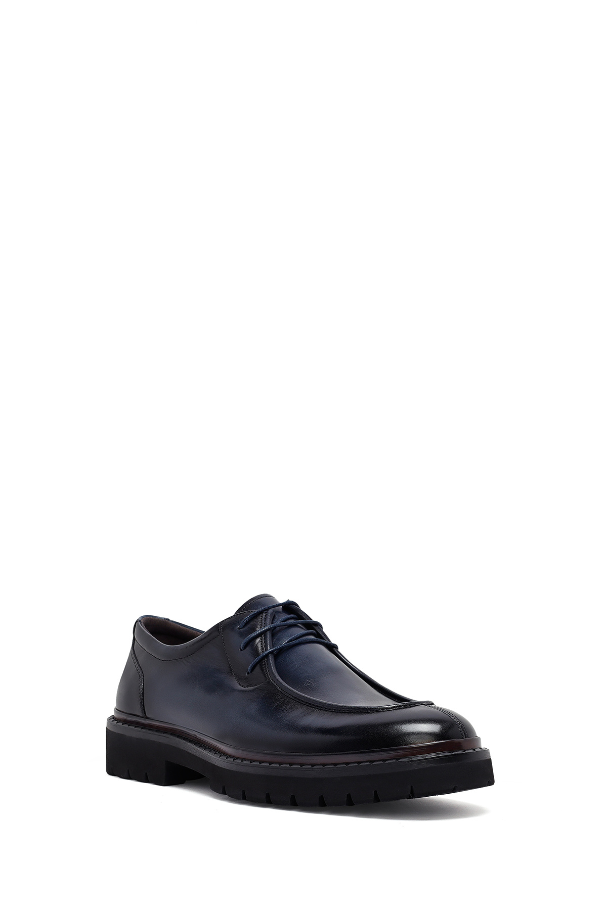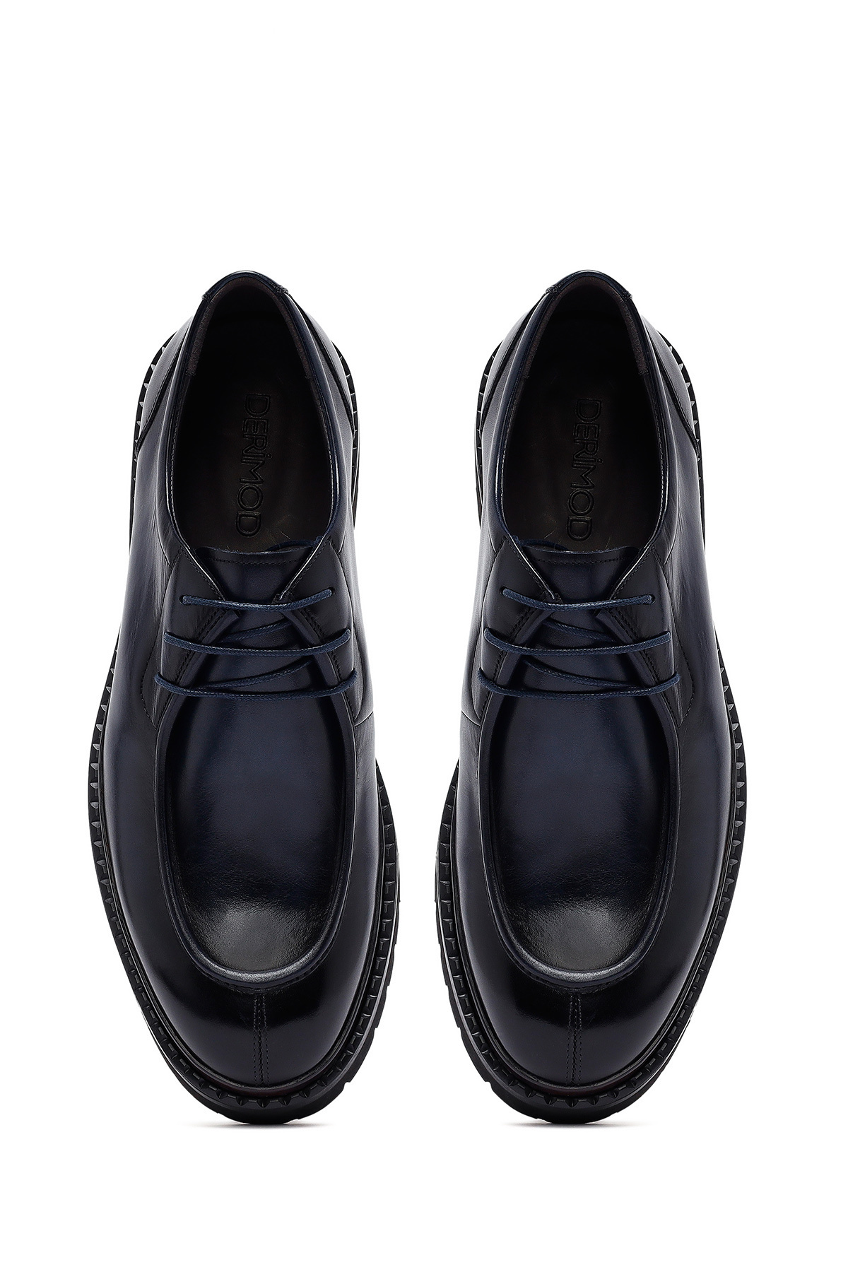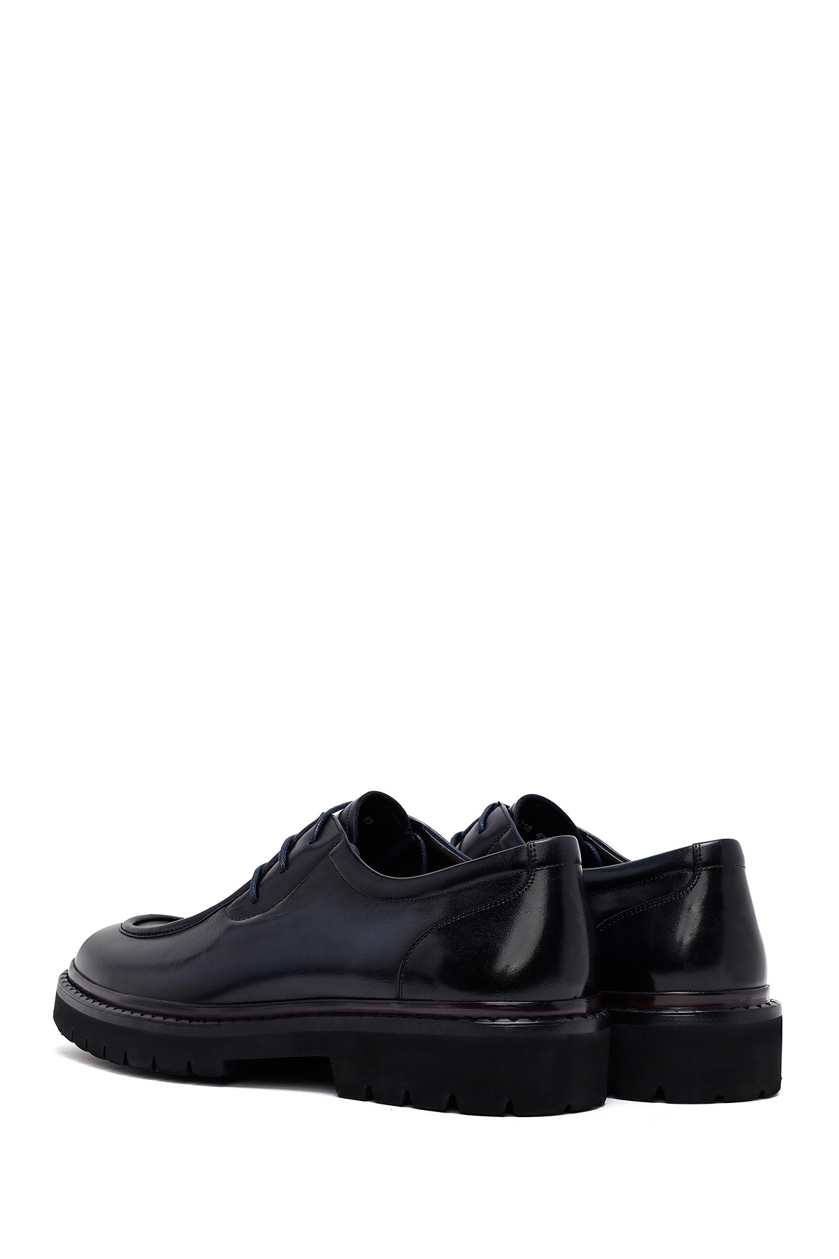 کفش راحتی مردانه چرمی بنددار سرمهای با کفی ضخیم. ساخته شده از چرم گاو.