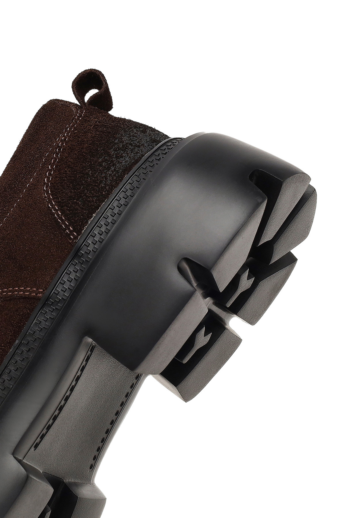 کفشهای راحتی مردانه قهوهای بنددار، با کفی ضخیم و جیر، با چرم گاوی.