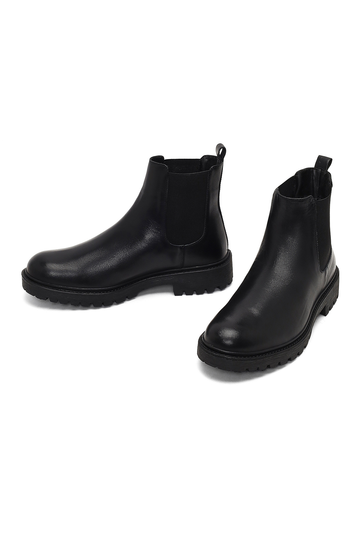 چکمههای چلسی مردانه چرم مشکی دارای چرم گاوی هستند.