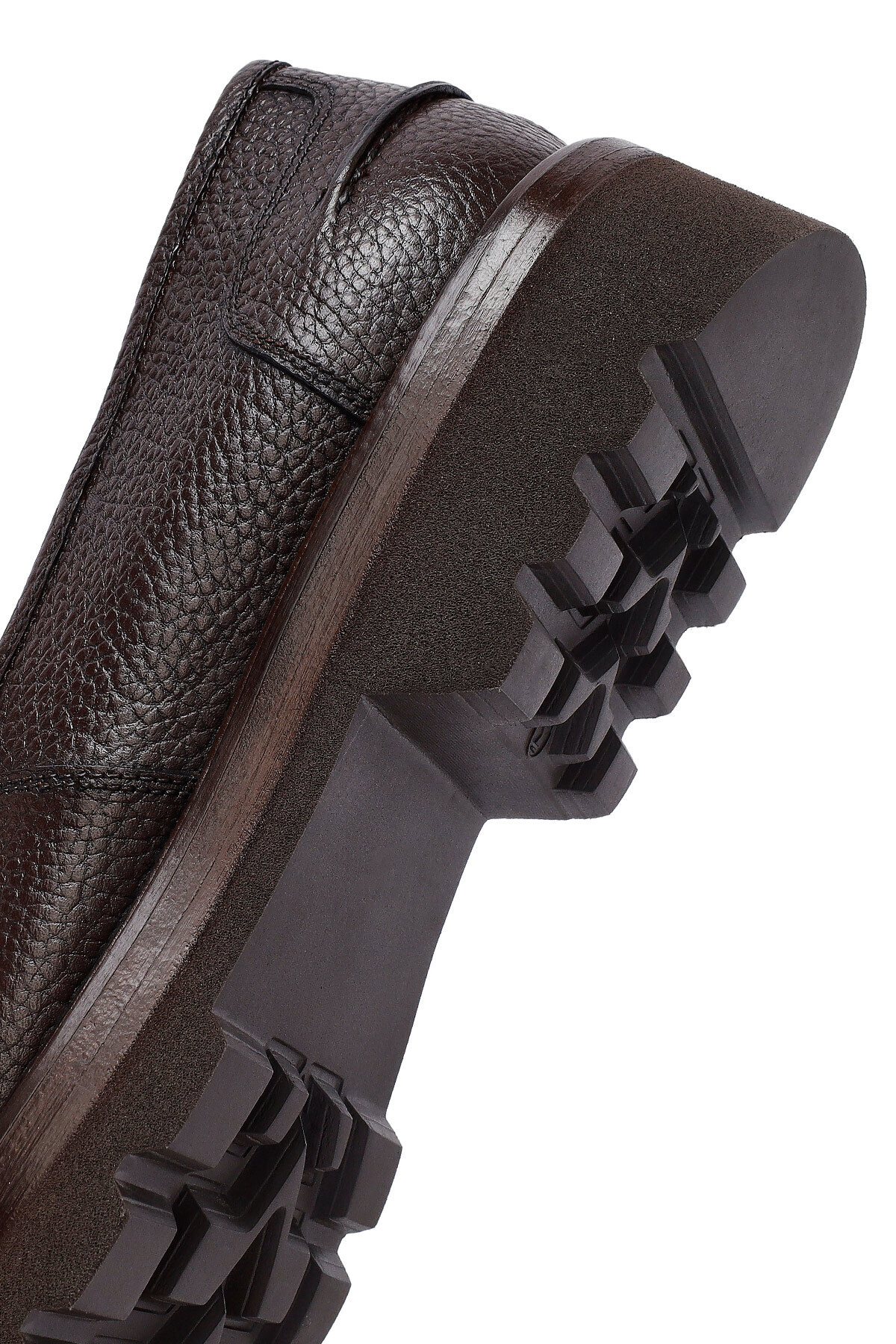 کفشهای راحتی مردانه چرم قهوهای طرح لوفر، از چرم گاوی ساخته شدهاند.