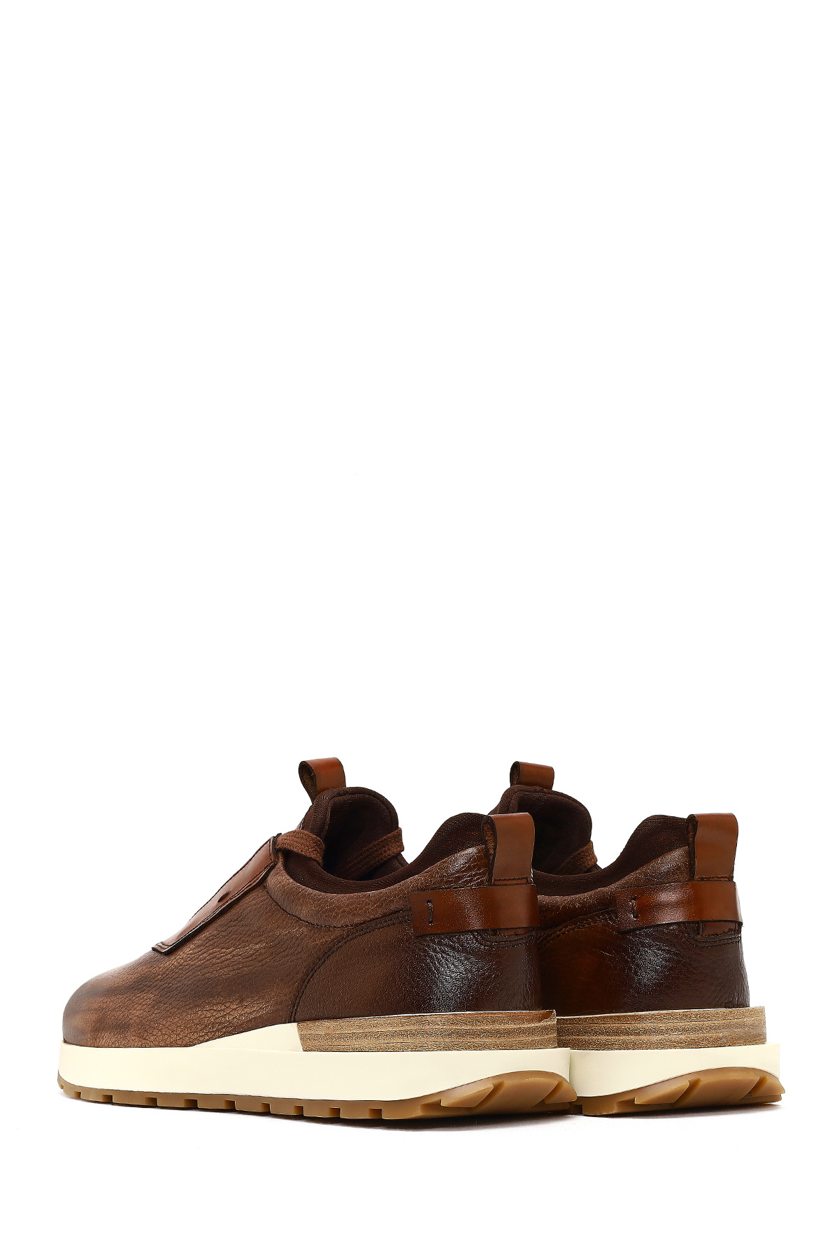 کفش کتانی مردانه چرم مصنوعی قهوهای با کفی ضخیم، ساخته شده از چرم گاو.