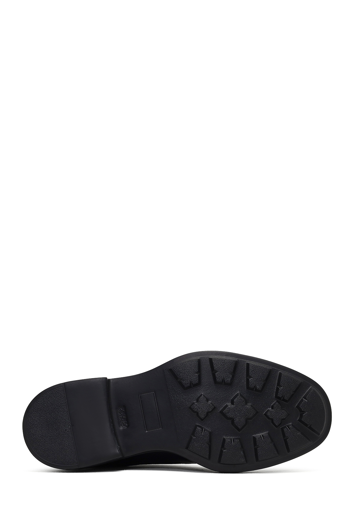 کفشهای راحتی مردانه چرمی مشکی بنددار با کفی ضخیم، دارای چرم گاوی هستند.