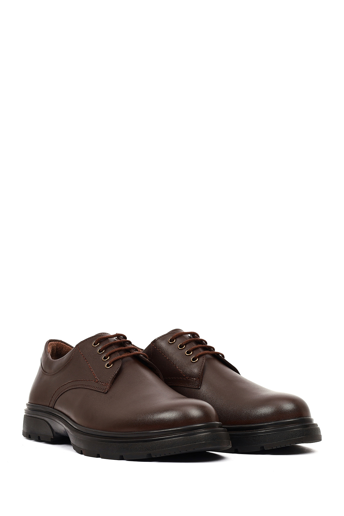 کفشهای مردانهی قهوهای بنددار چرمی غیررسمی حاوی چرم گاوی هستند.