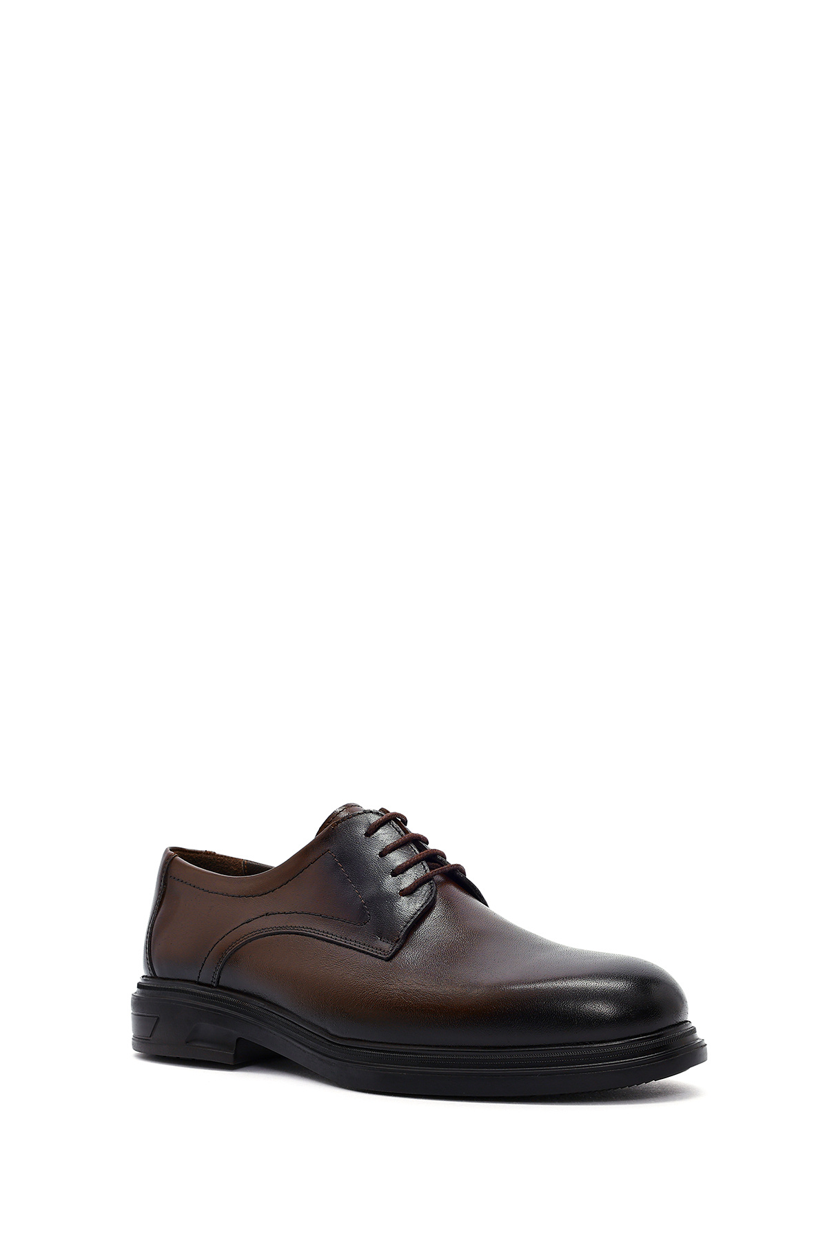 کفشهای مردانهی قهوهای بنددار چرمی غیررسمی حاوی چرم گاوی هستند.