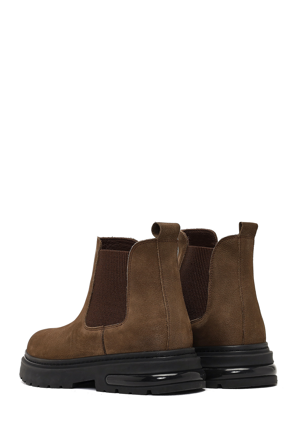 چکمههای چلسی مردانه از جنس چرم نبوک قهوهای روشن، حاوی چرم گاوی هستند.