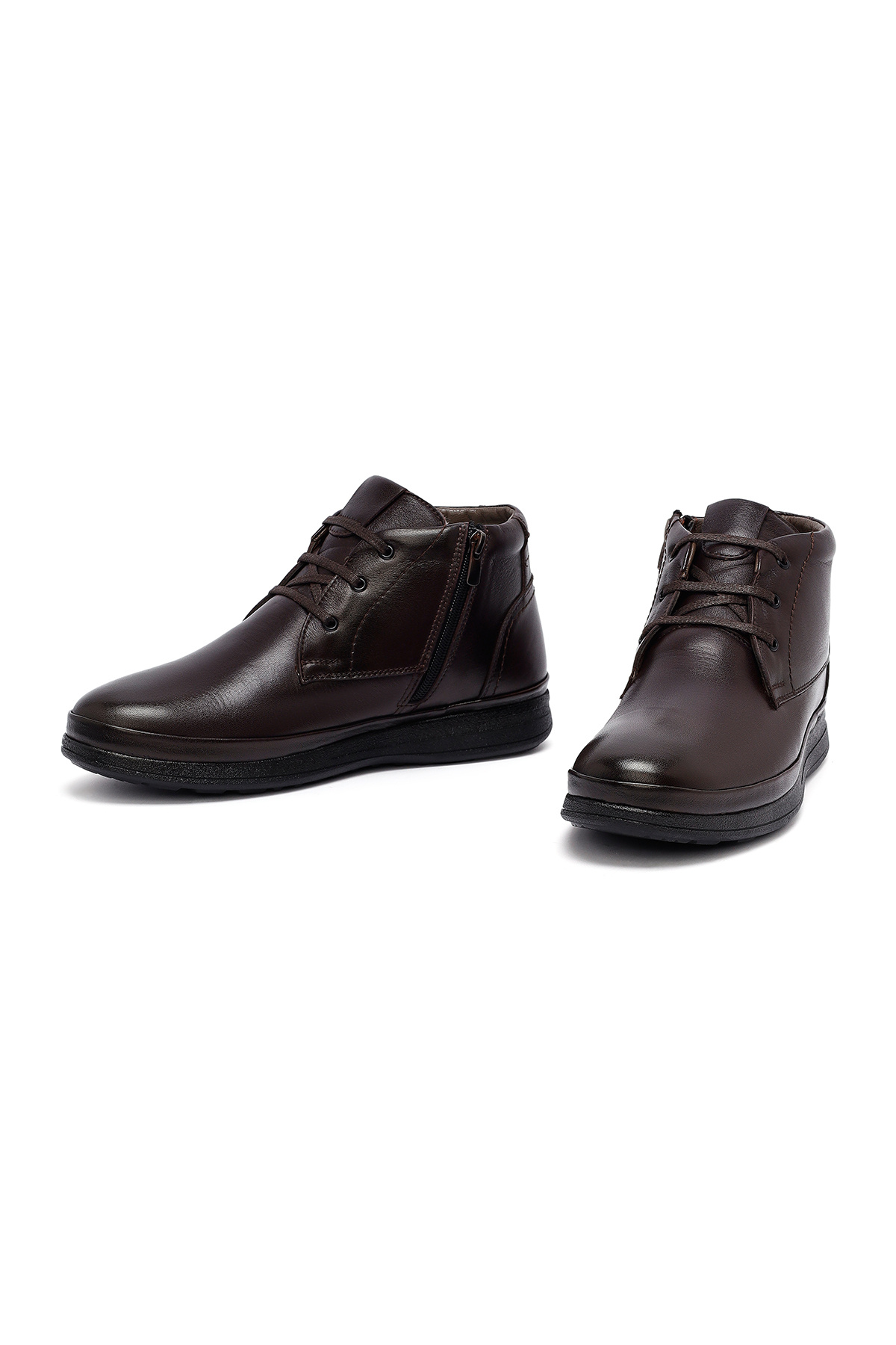 چکمه مردانه قهوهای بنددار، زیپدار، مناسب برای استفاده روزمره، ساخته شده از چرم گاو.
