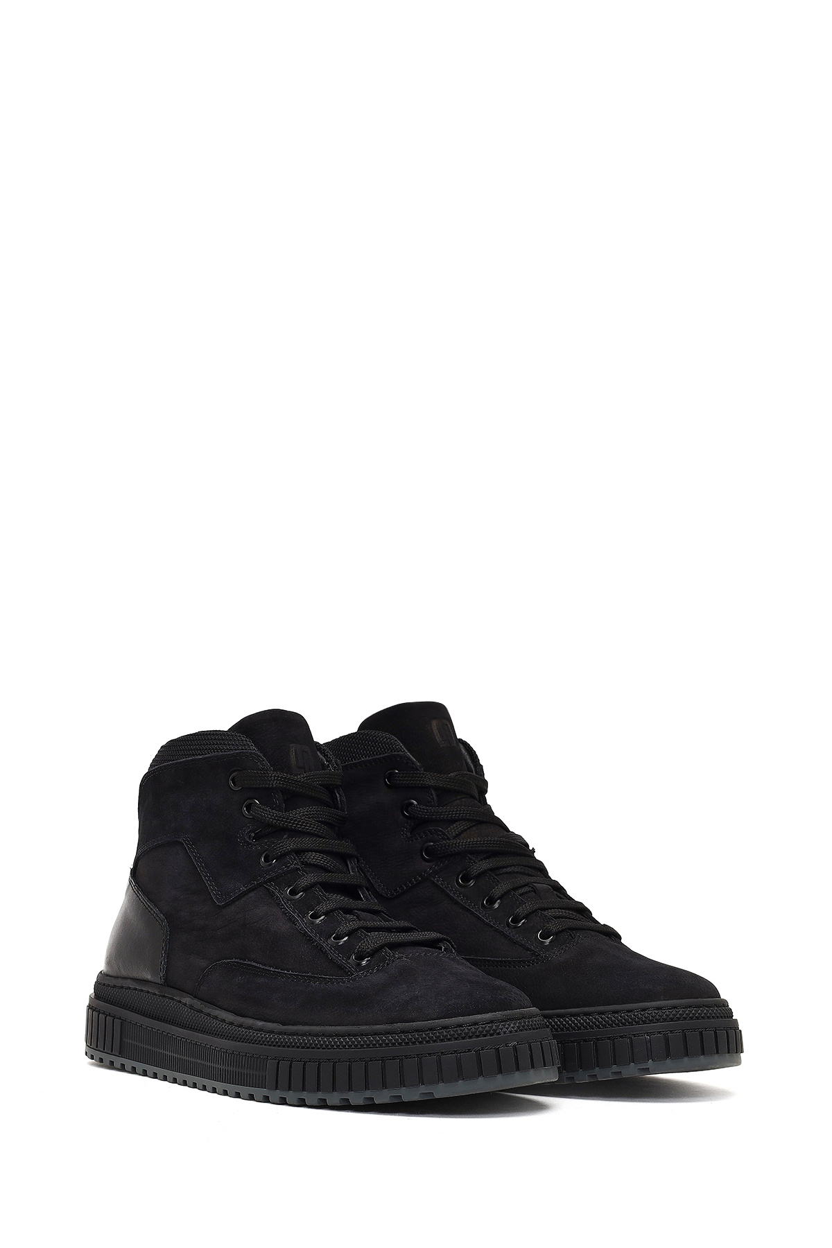 چکمههای اسپرت مردانه چرم نبوک مشکی بنددار، دارای چرم گاوی هستند.
