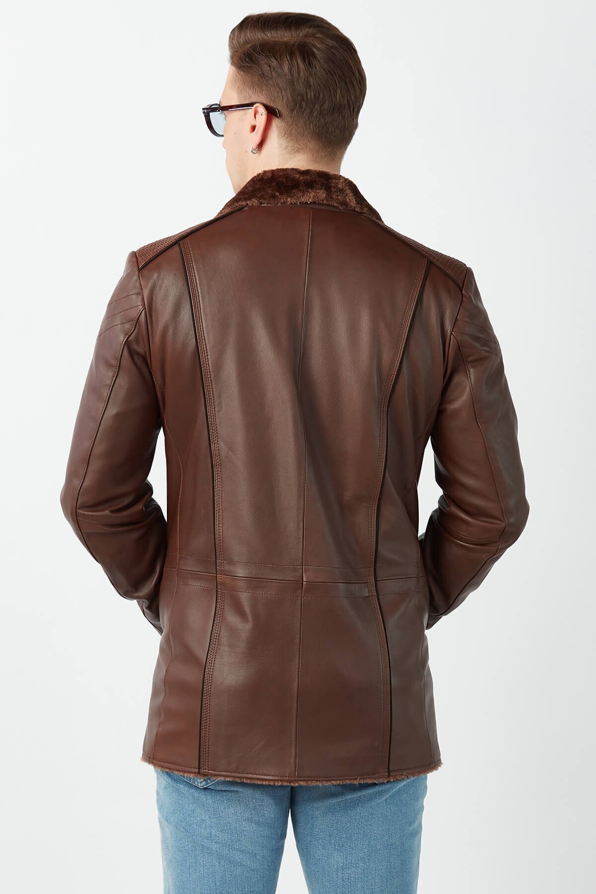 خرید اینترنتی کاپشن خز قهوهای مردانه چرم اصل برند دریزا Deriza اورجینال از Deriza Beybium نمایندگی ترکیه