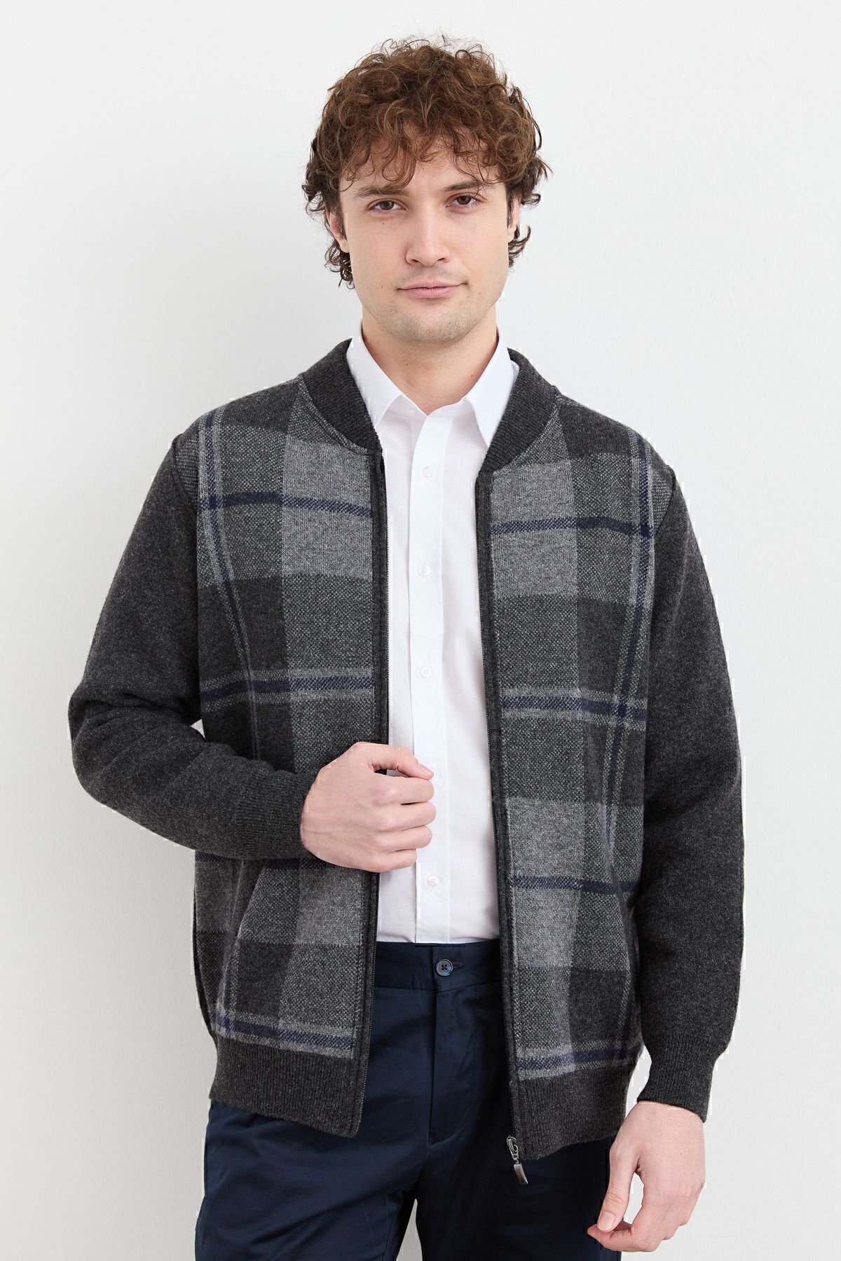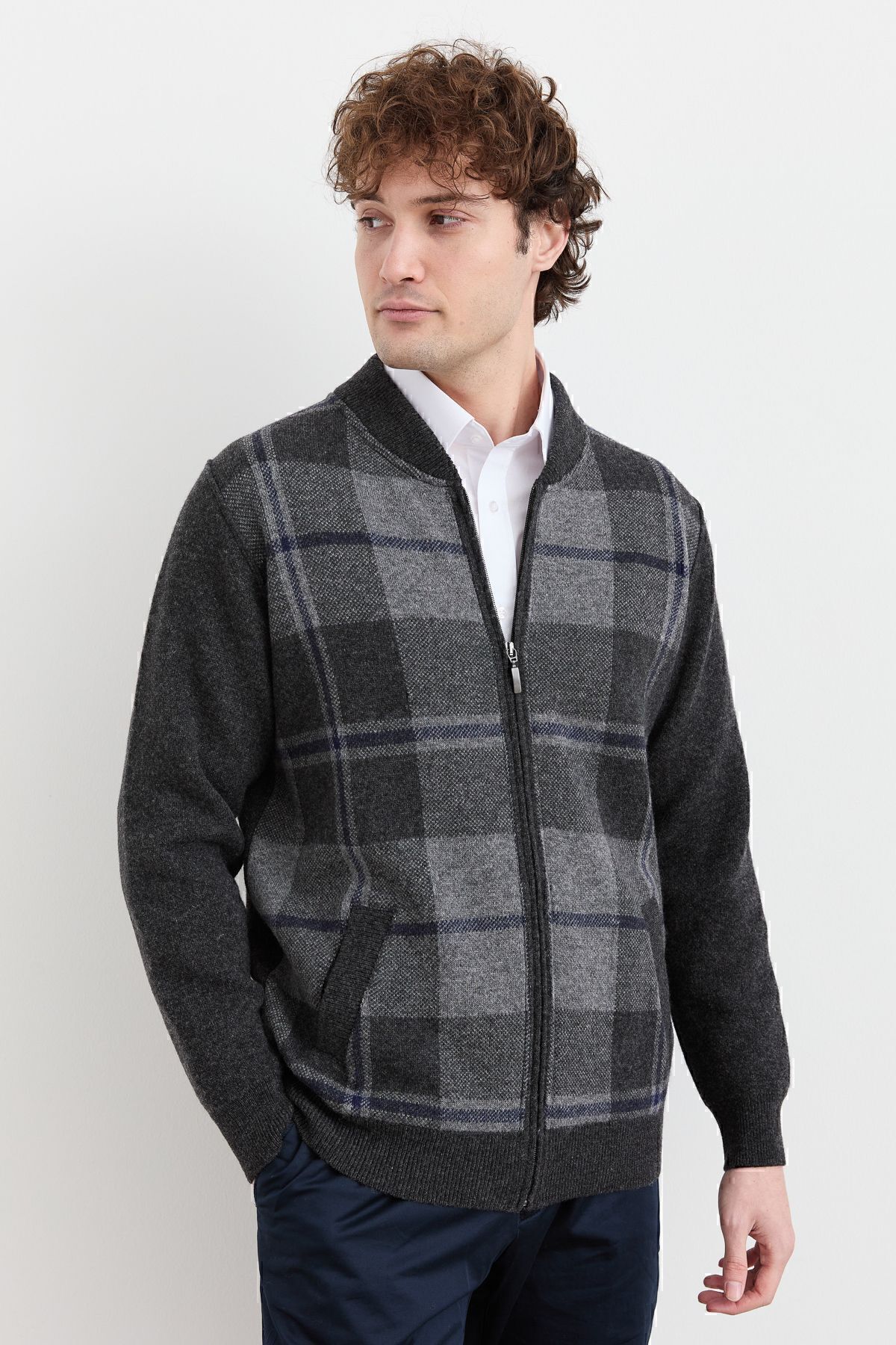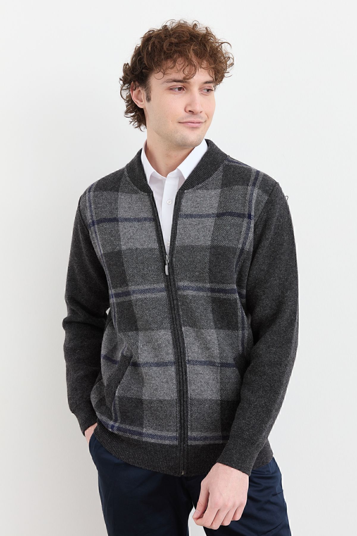 خرید اینترنتی کاپشن دودی تیره یقه یقه پدربزرگ شطرنجی بافت پیکه برند Desen Triko اورجینال از DESEN TRİKO نمایندگی ترکیه