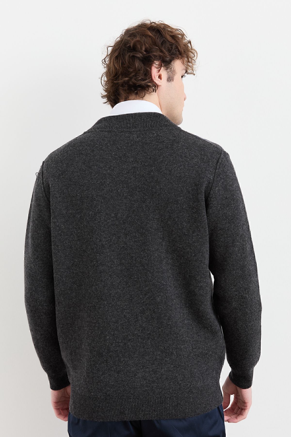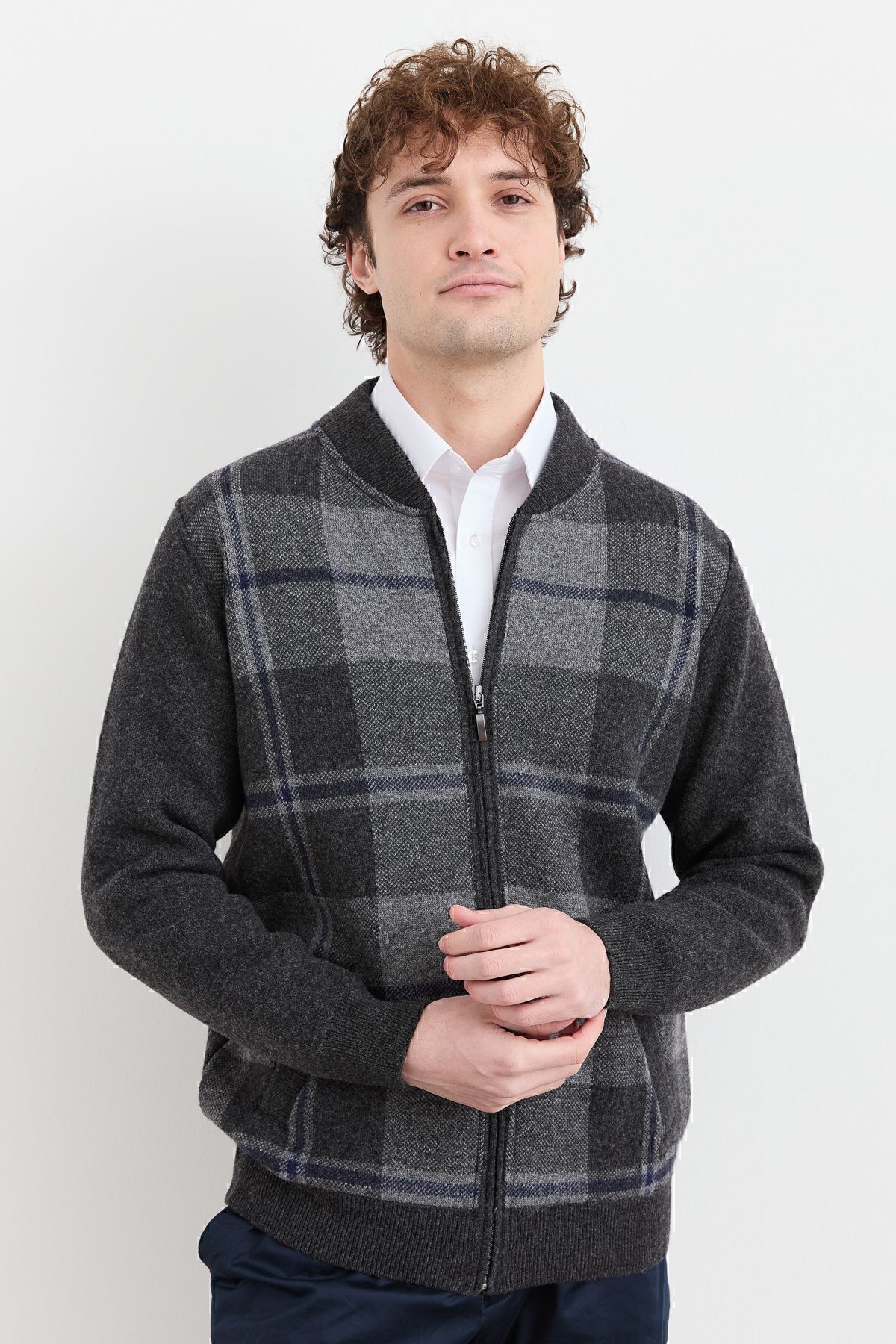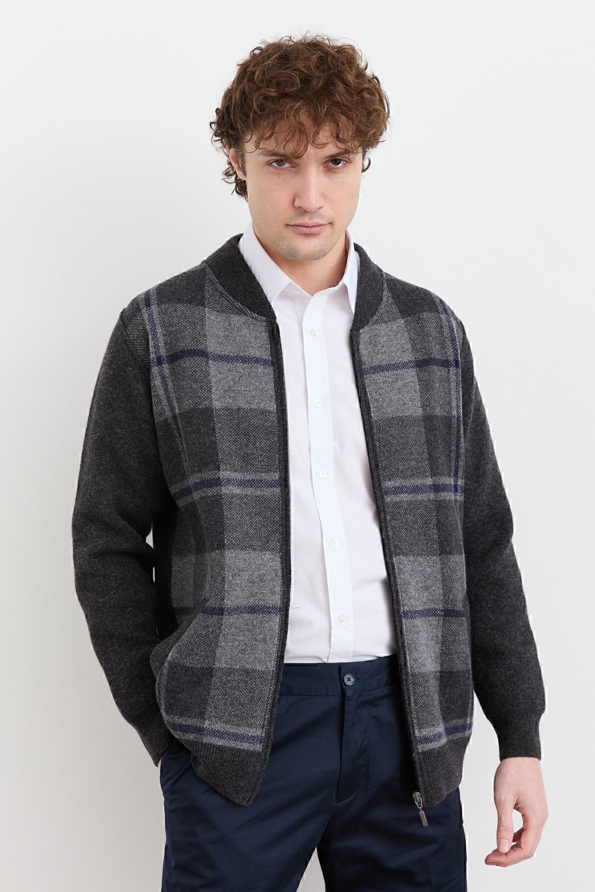 خرید اینترنتی کاپشن دودی تیره یقه یقه پدربزرگ شطرنجی بافت پیکه برند Desen Triko اورجینال از DESEN TRİKO نمایندگی ترکیه