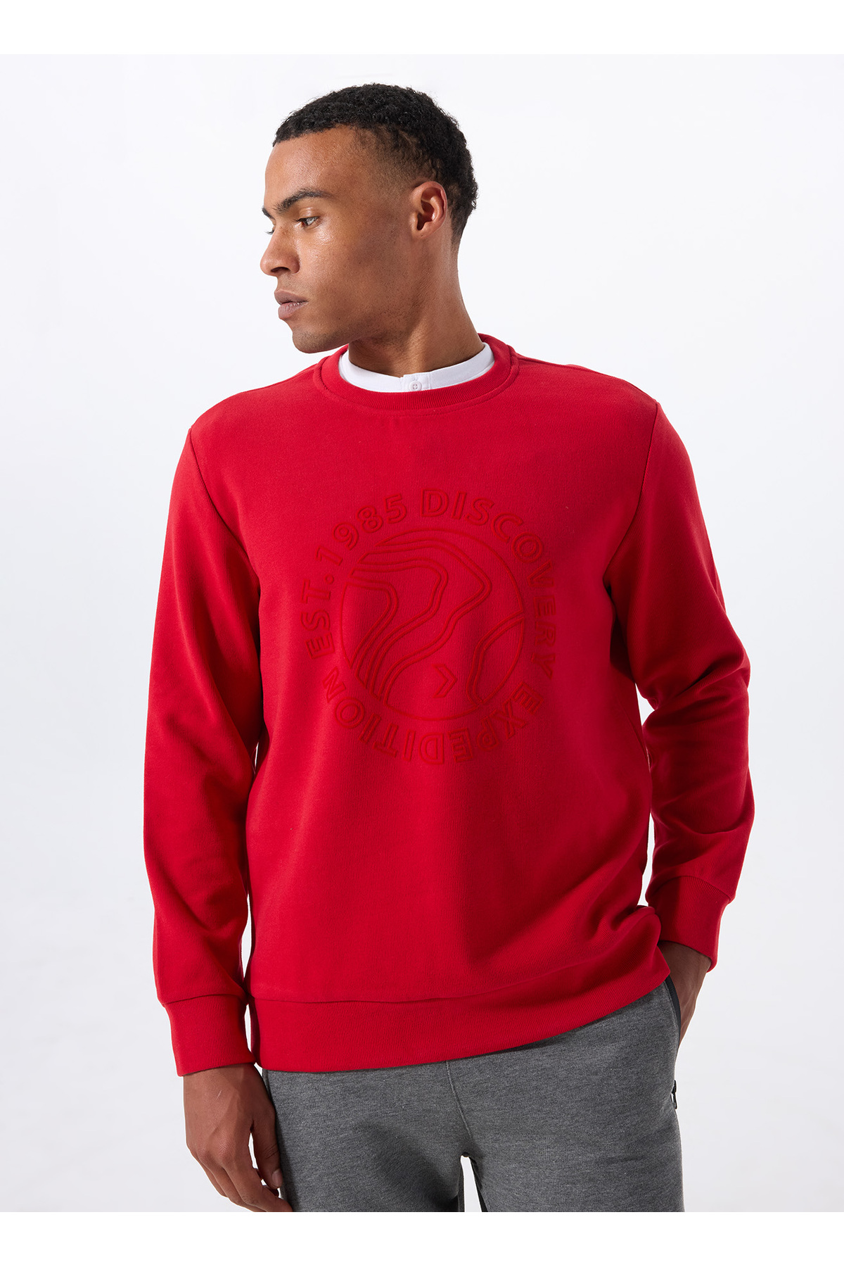 خرید اینترنتی سویشرت مردانه طرحدار یقه گرد قرمز D5WM-SWT3872 برند دیسکاوری اکسپدیشن Discovery Expedition اورجینال از BOYNER نمایندگی و فروشگاه معتبر ترکیه