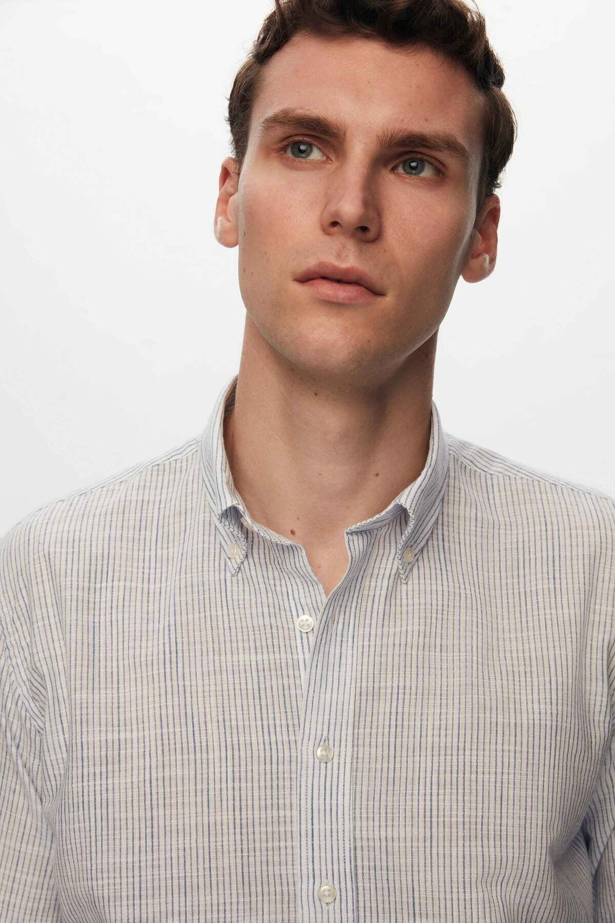 یقه دکمهدار، پیراهن ۱۰۰٪ پنبهای با ظاهری کتانی.