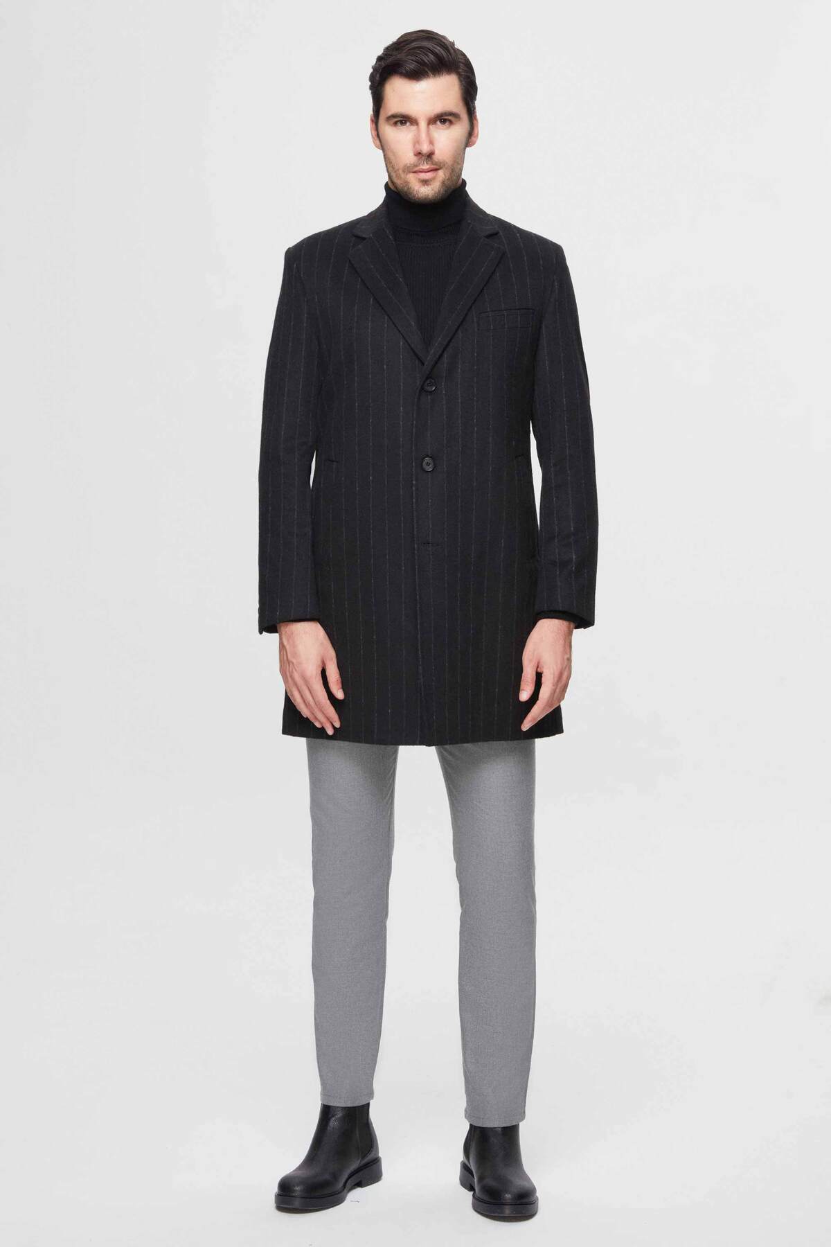 خرید اینترنتی کت پشمی تک چاک مشکی راه راه معمولی DS Damat برند دی اس دامات D’S Damat اورجینال از DS DAMAT نمایندگی و فروشگاه معتبر ترکیه