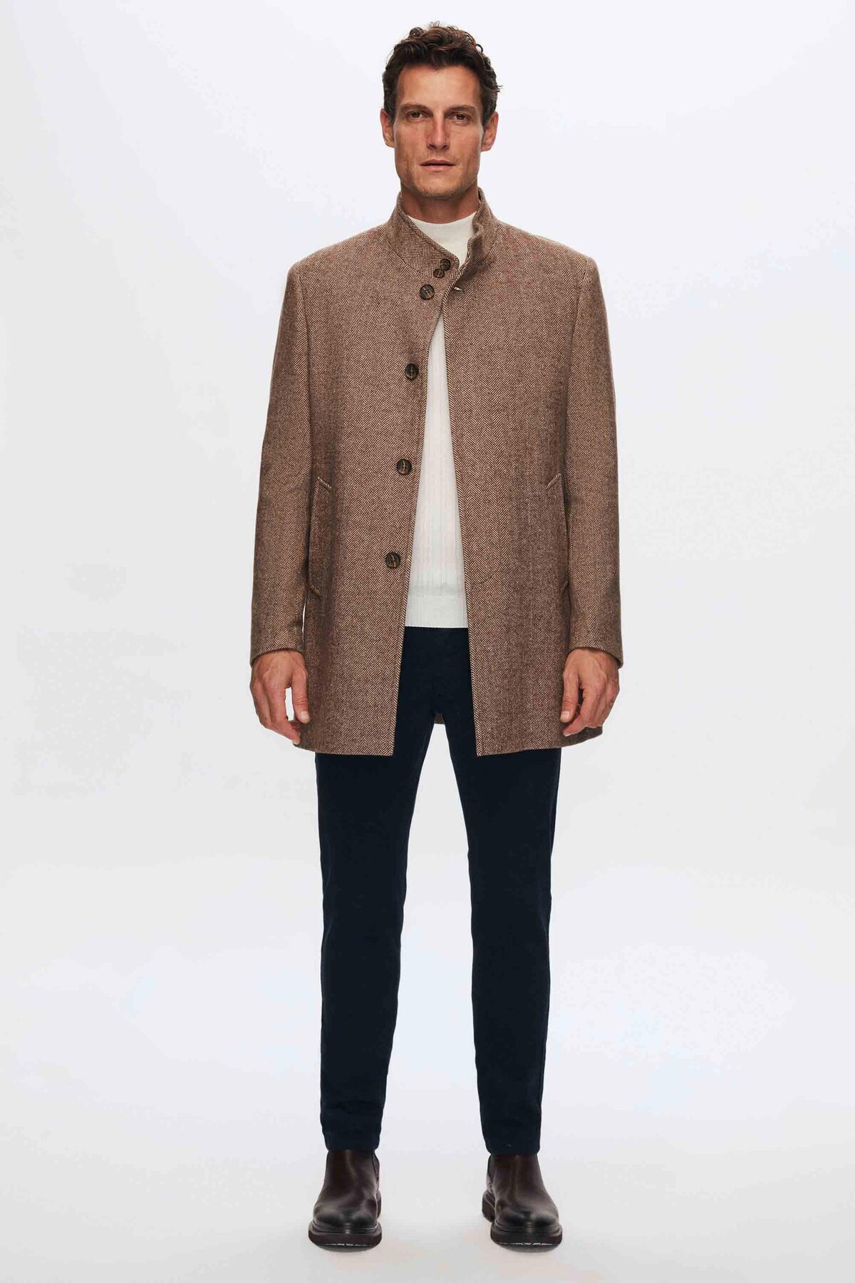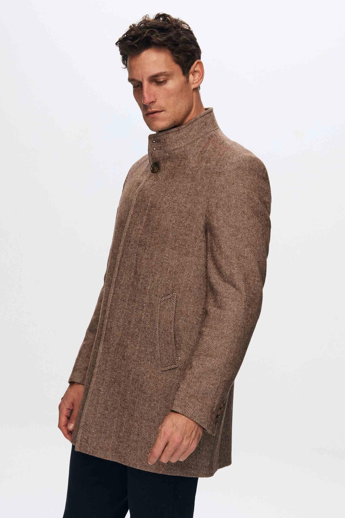 خرید اینترنتی کت قهوهای طرح هرینگبون یقه ماندارین مدل Regular Fit از برند Ds Damat برند دی اس دامات D’S Damat اورجینال از DS DAMAT نمایندگی ترکیه