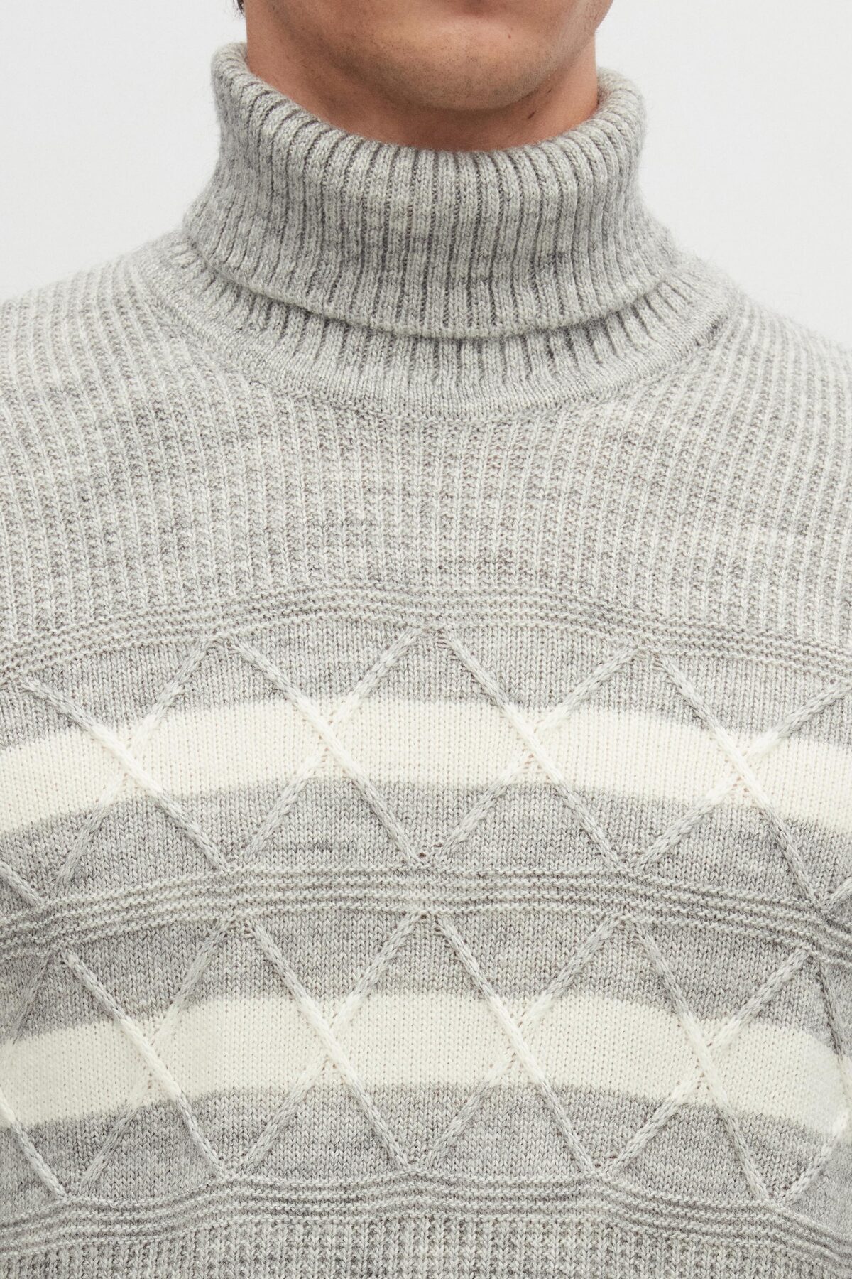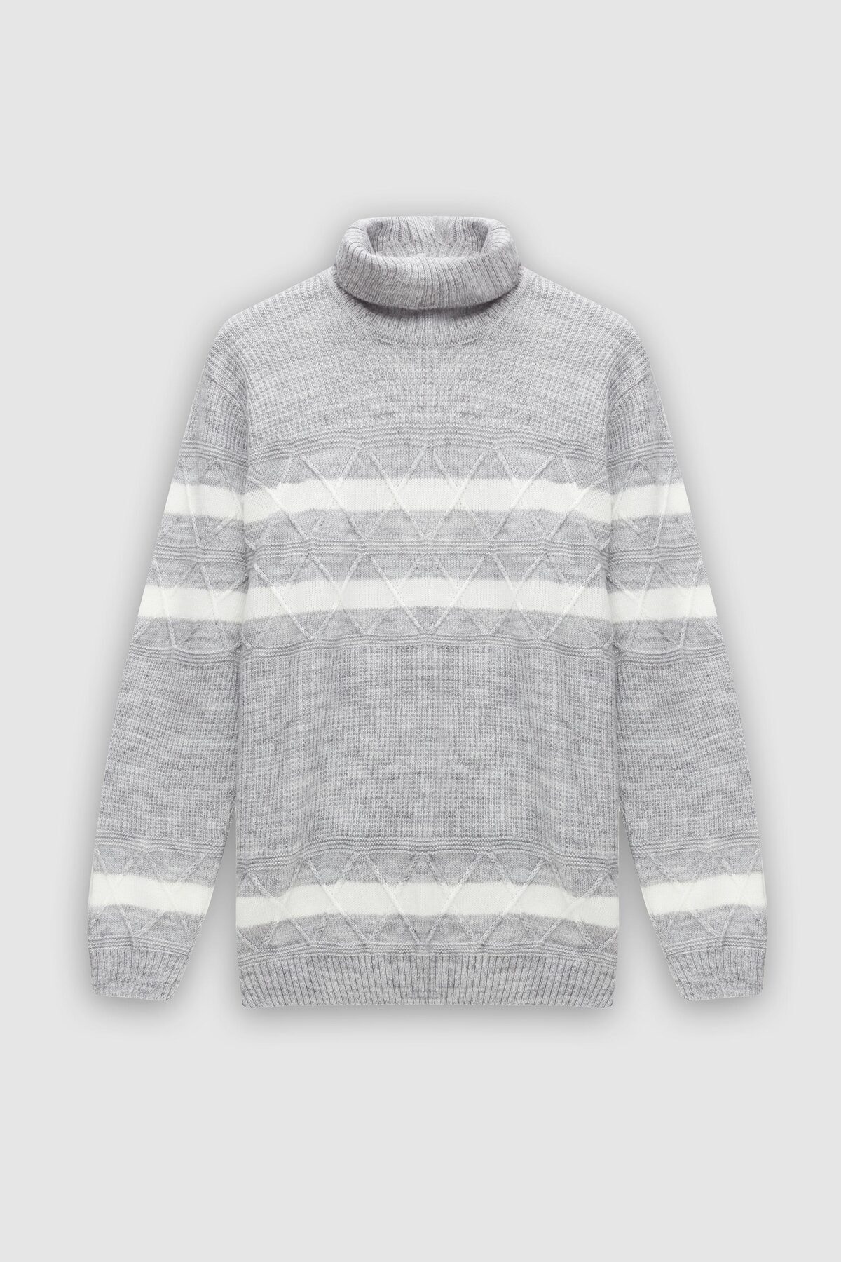 خرید اینترنتی ژاکت بافتنی یقه اسکی بدون پرز، خاکستری راه راه ملانژ، مدل Regular Fit از برند Ds Damat برند دی اس دامات D’S Damat اورجینال از DS DAMAT نمایندگی ترکیه