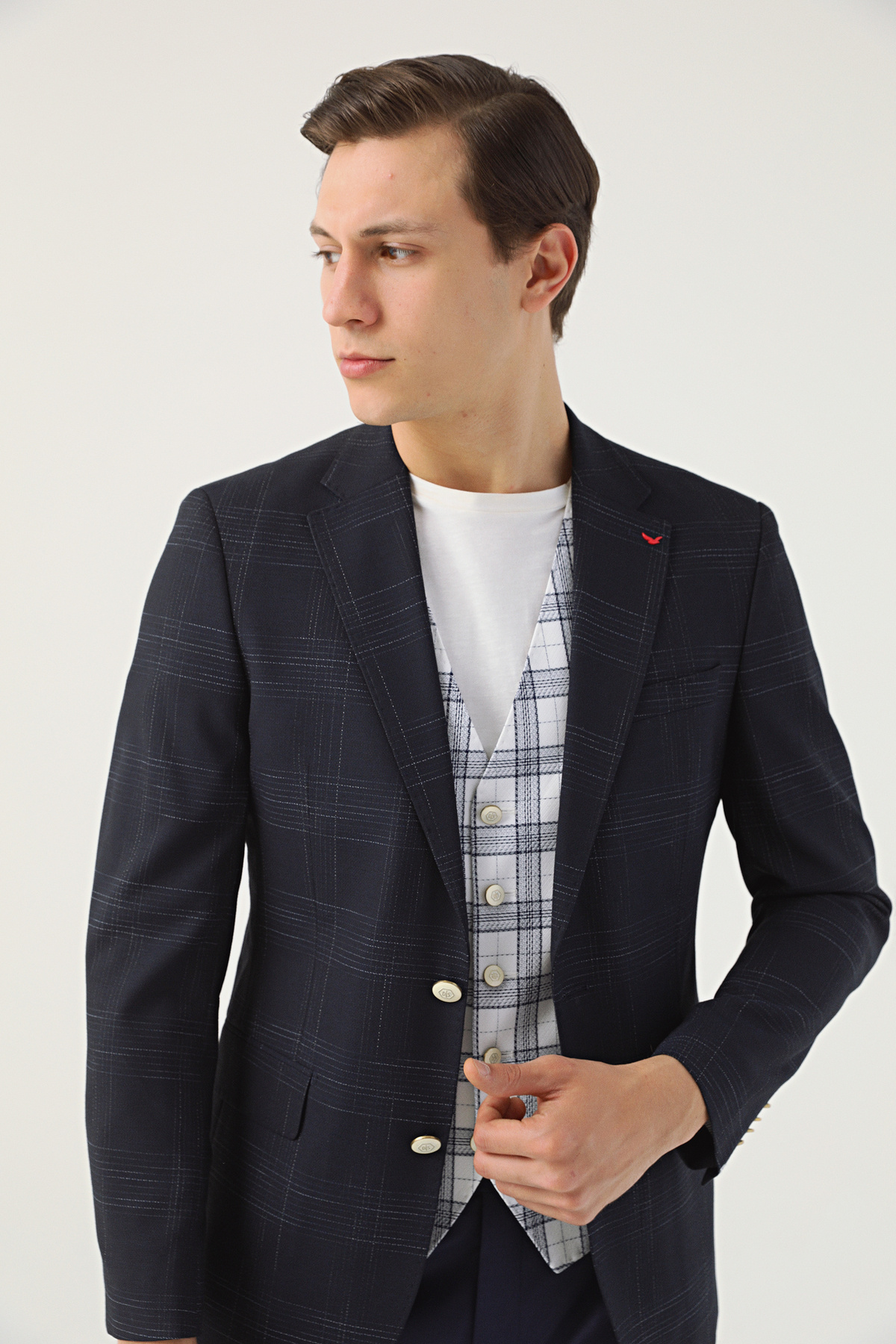 خرید اینترنتی کت و شلوار ترکیبی دابی سرمهای دیاس گروم اسلیم فیت برند دی اس دامات D’S Damat اورجینال از DS DAMAT نمایندگی ترکیه