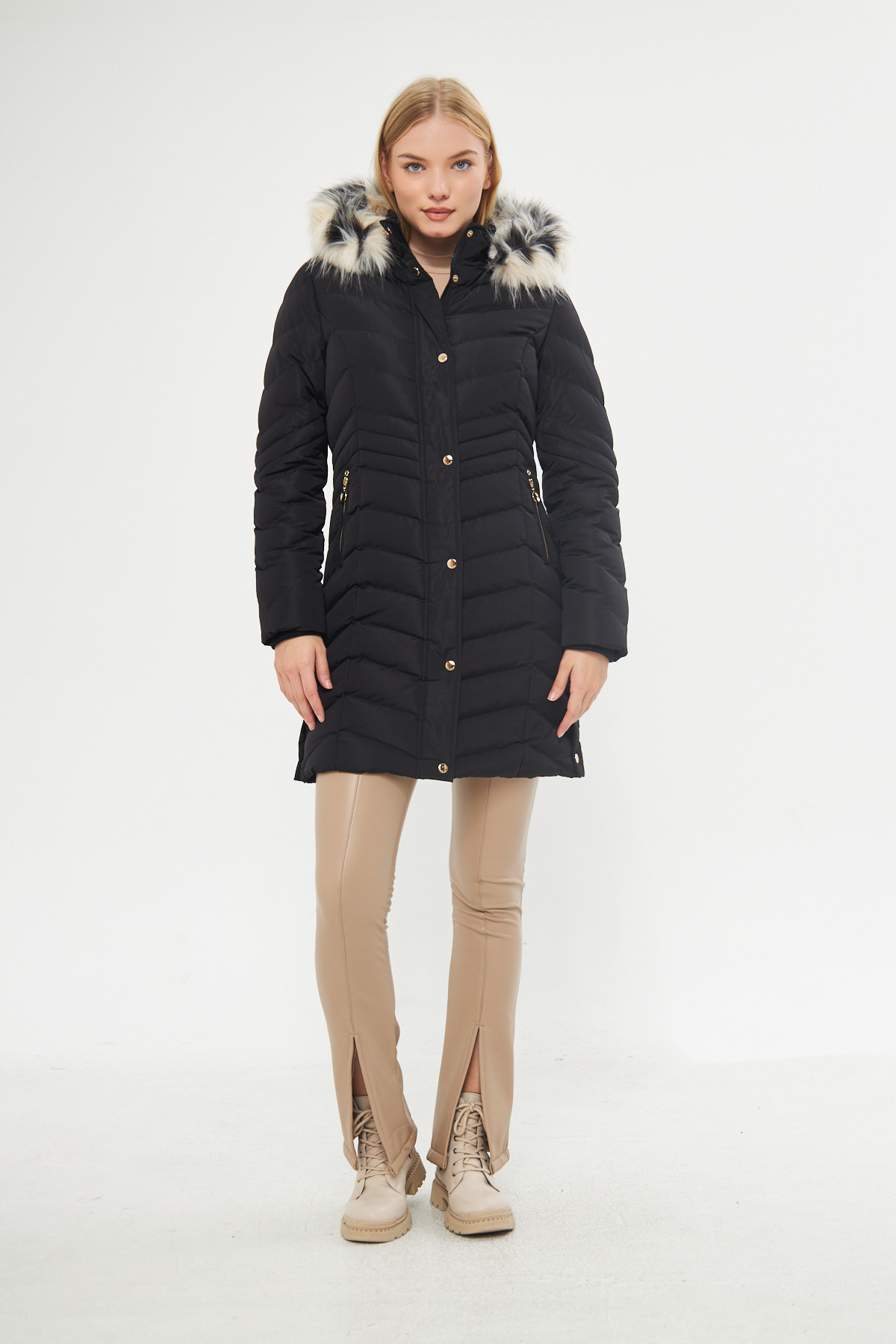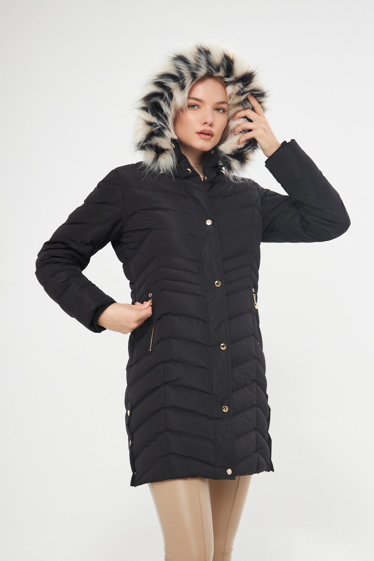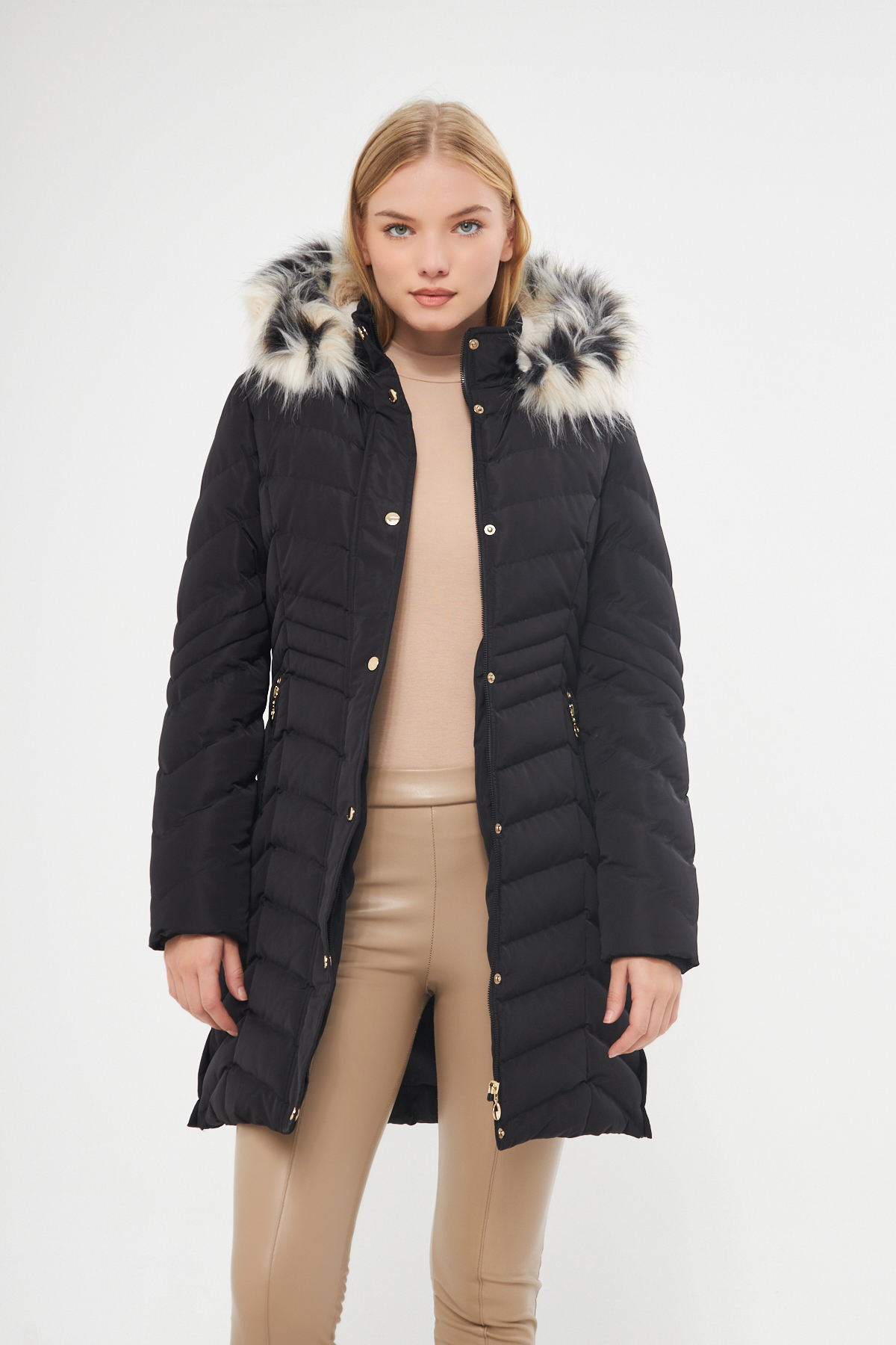 خرید اینترنتی پالتو زنانه مشکی ضخیم با کلاه جداشونده و آستر خزدار ۵۳۰۲ برند دینامو Dynamo اورجینال از DYNAMO نمایندگی ترکیه
