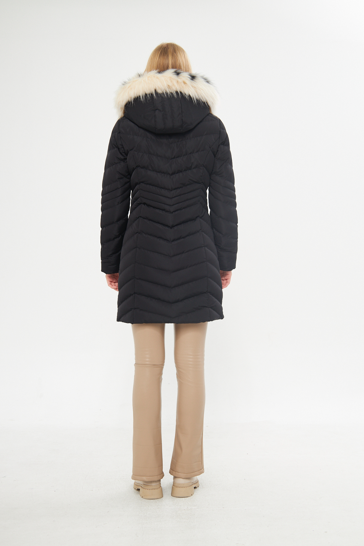 یک کت ضخیم با کلاه جداشدنی و آستر خز.