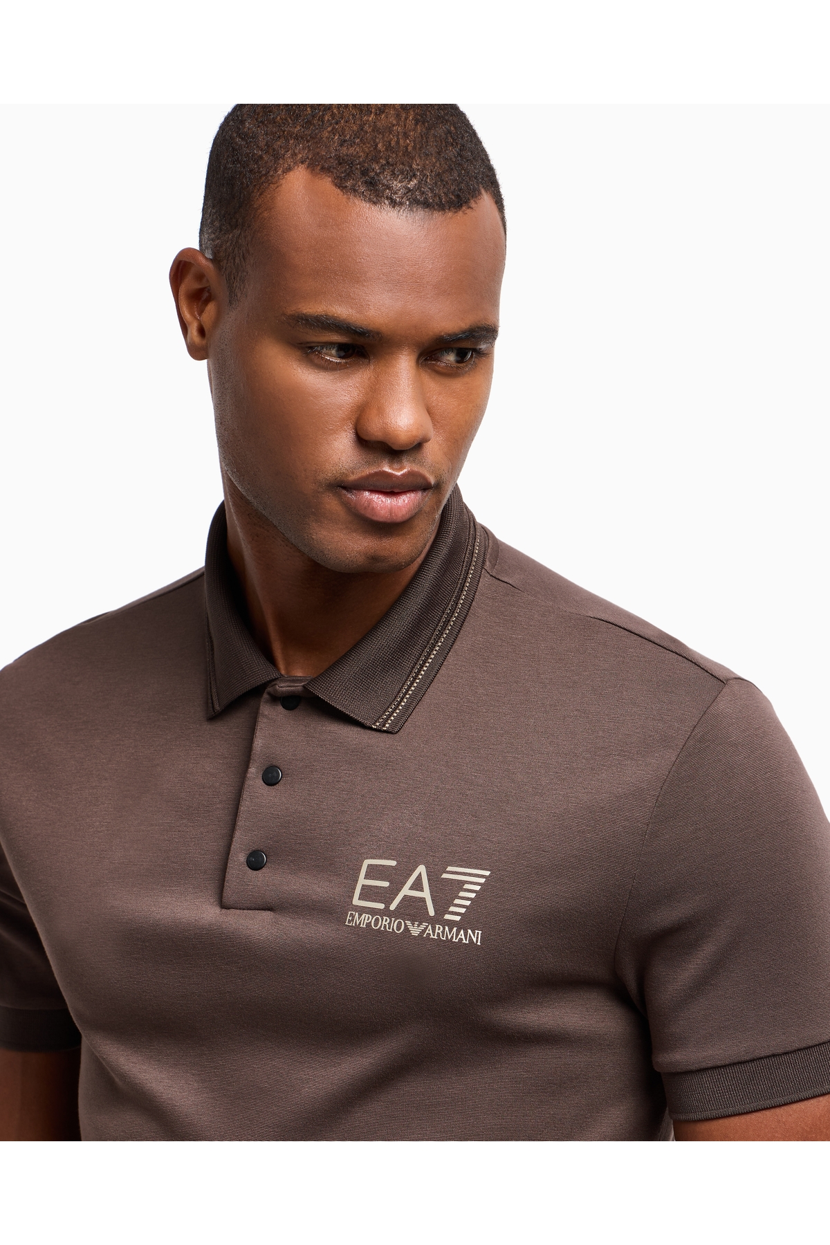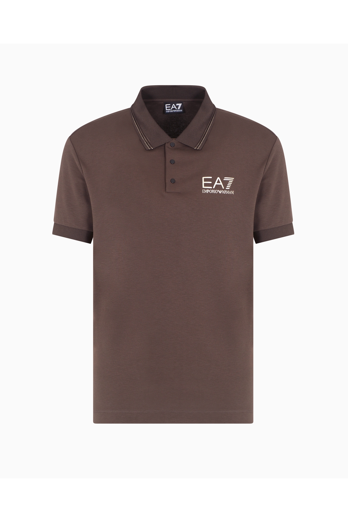 خرید اینترنتی پولو شرت مردانه اسلیم فیت طرح راه راه با لوگوی طلایی EA7، آستین کوتاه، قهوهای، کد 7M000 برند EA7 اورجینال از Wejaar نمایندگی ترکیه