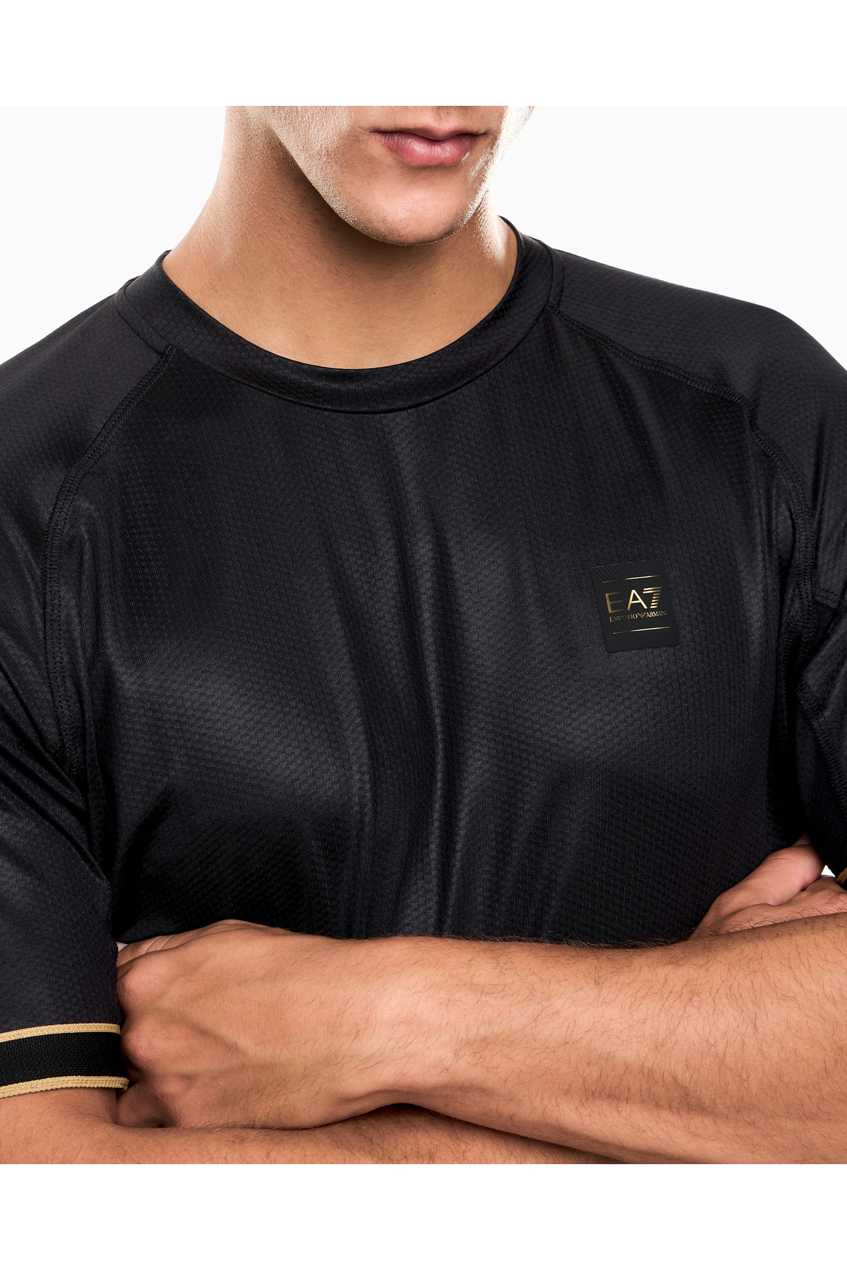 خرید اینترنتی تیشرت آستین کوتاه مردانه طرح یقه گرد نخی مشکی کد 7M000619 AF16723-UC001 برند EA7 اورجینال از Wejaar نمایندگی ترکیه
