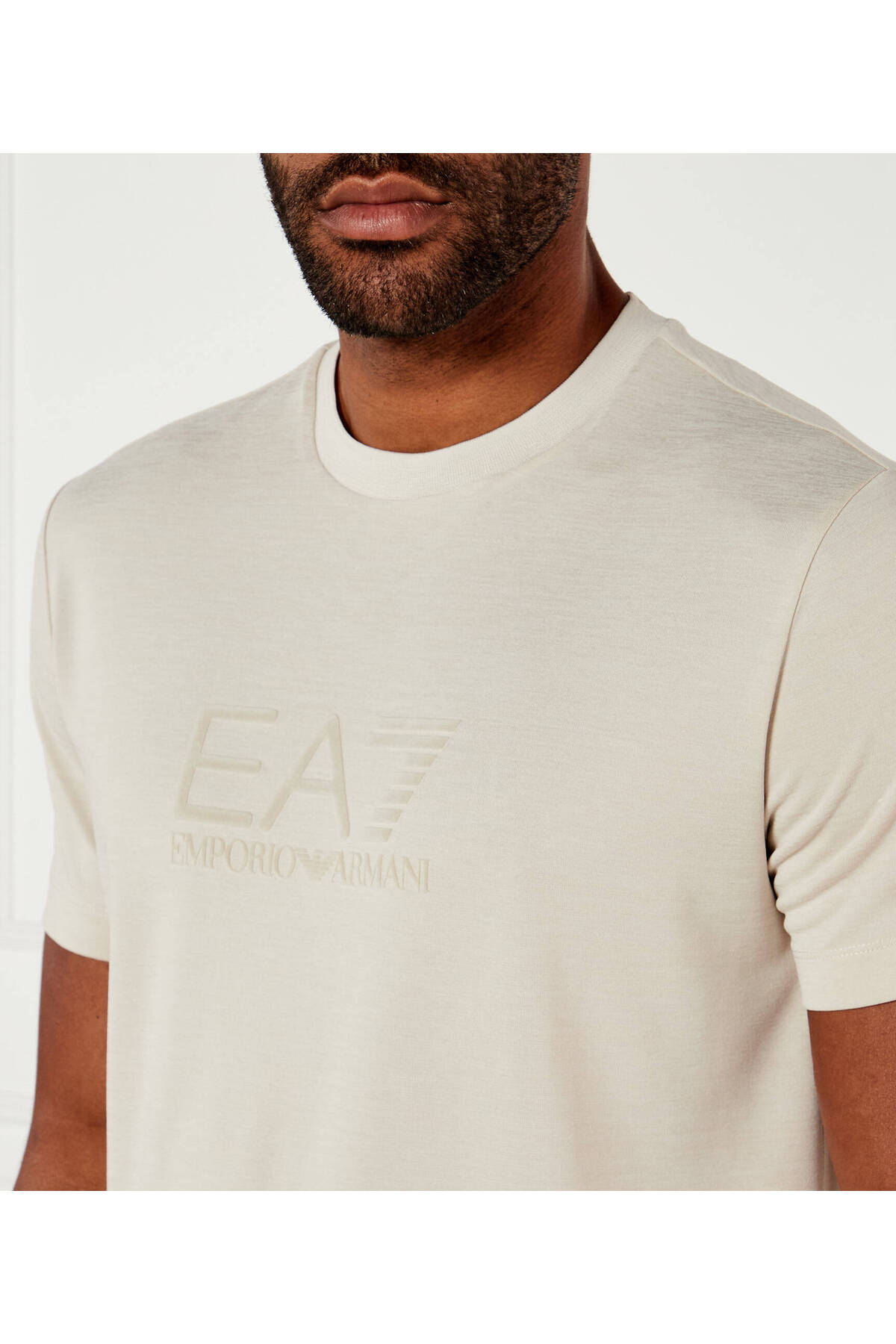 خرید اینترنتی تیشرت مردانه آستین کوتاه یقه گرد طرحدار نخی کرم رنگ 7M000755 AF13869-U1086 برند EA7 اورجینال از Wejaar نمایندگی ترکیه