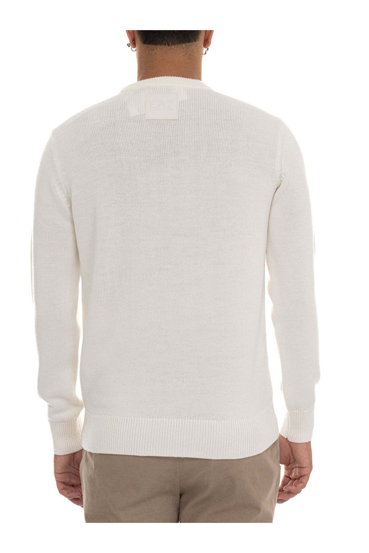 خرید اینترنتی ژاکت بافتنی مردانه یقه گرد آستین بلند مدل معمولی، رنگ سفید روشن، کد 7M000925، AF17667-U0002 برند EA7 اورجینال از Wejaar نمایندگی ترکیه