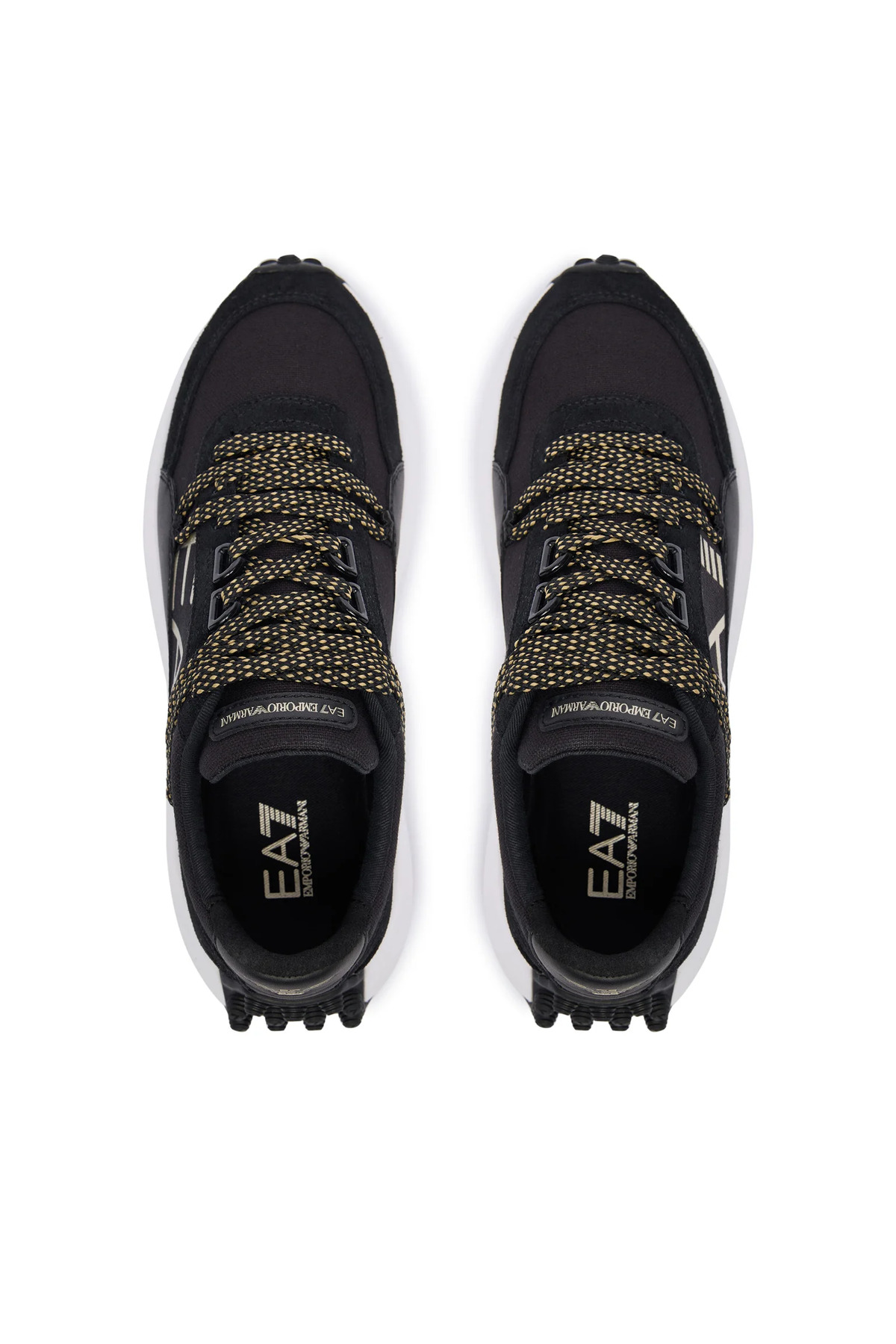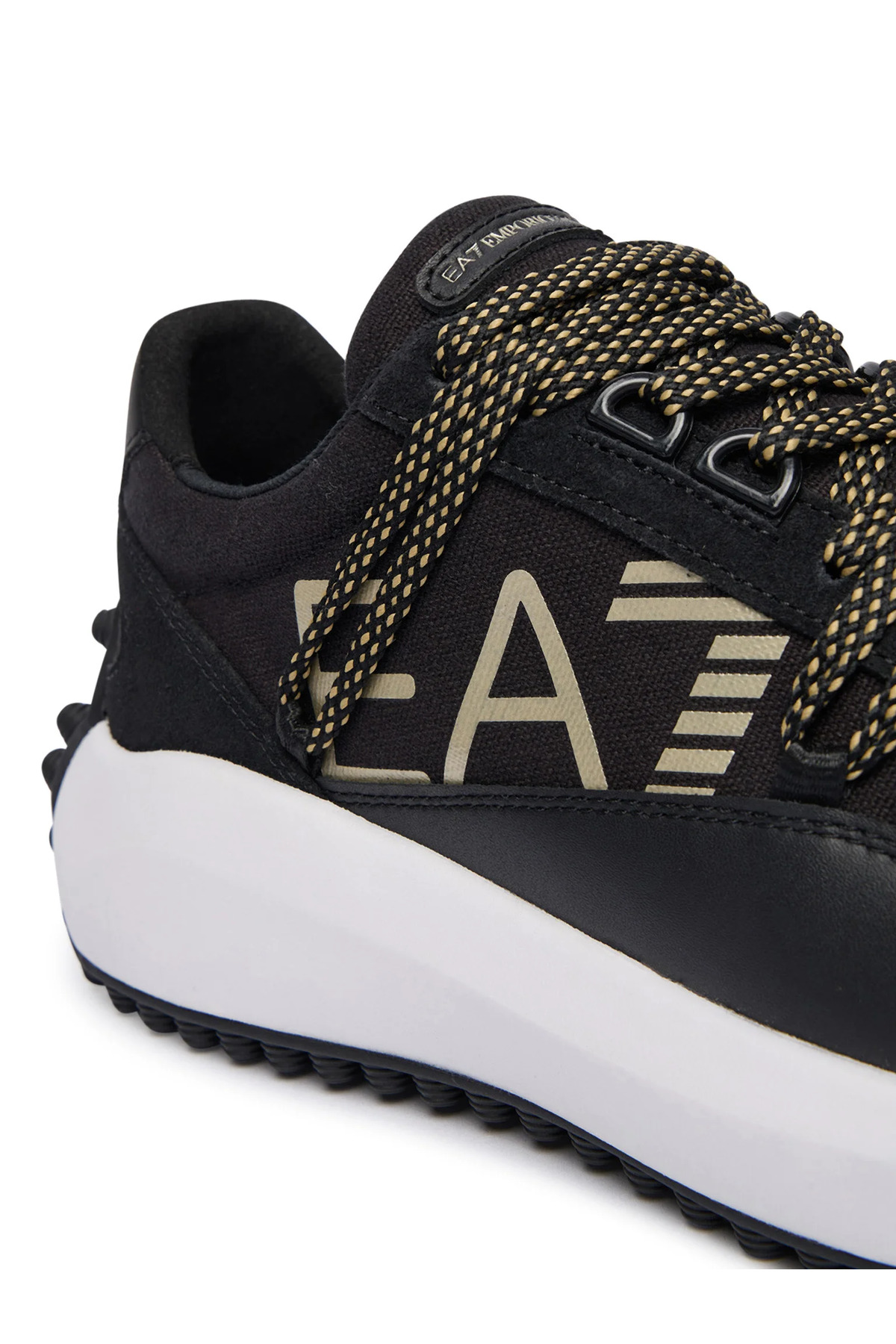 خرید اینترنتی کفش کتانی مردانه طرحدار با کفی ضخیم و بنددار، مشکی-طلایی، کد 7X000355، AF18869-MC021 برند EA7 اورجینال از Wejaar نمایندگی ترکیه