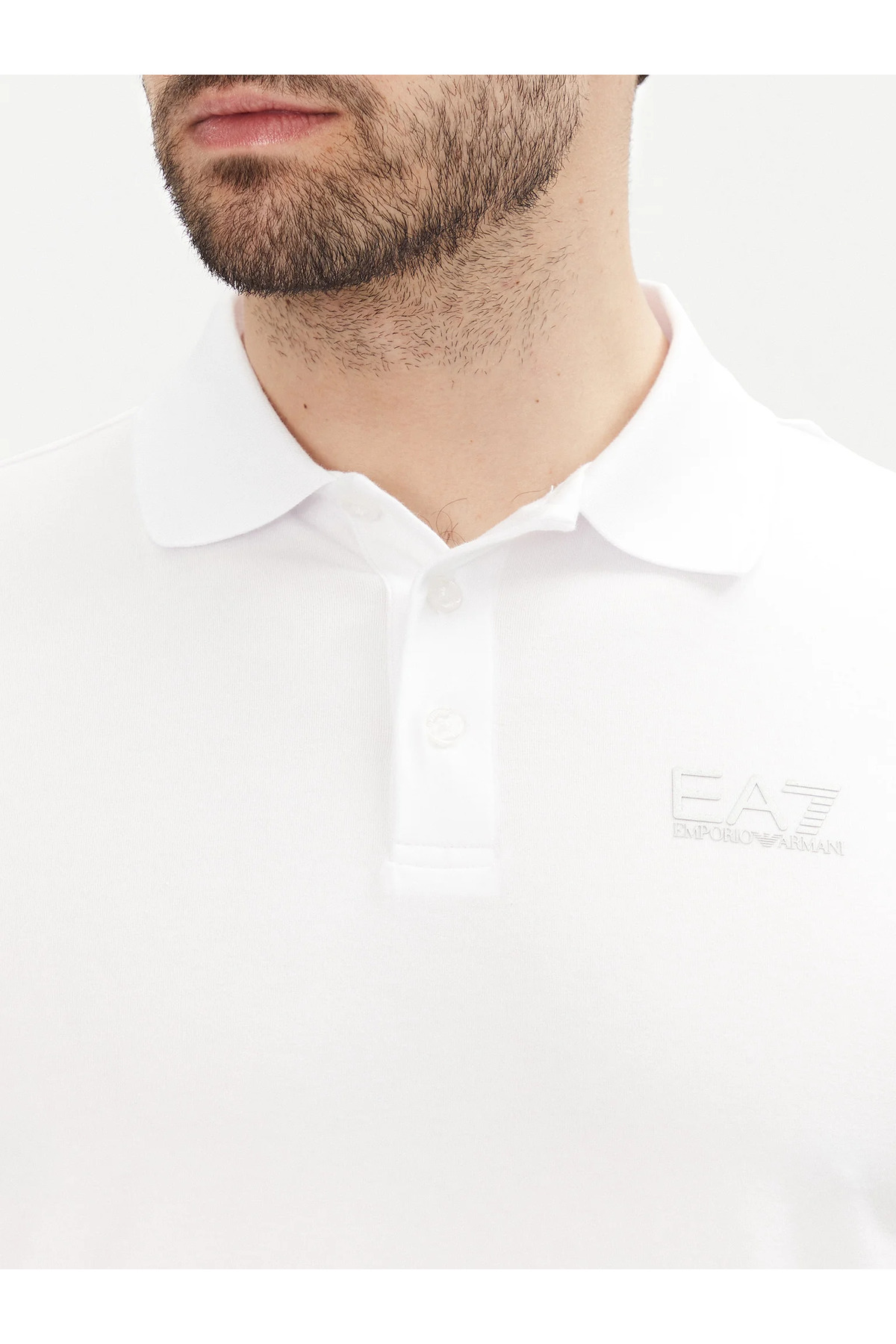 خرید اینترنتی پولو شرت مردانه یقه گرد طرح لوگودار آستین کوتاه سفید نخی 8NPF14 PJVQZ-0100 برند EA7 اورجینال از Wejaar نمایندگی ترکیه