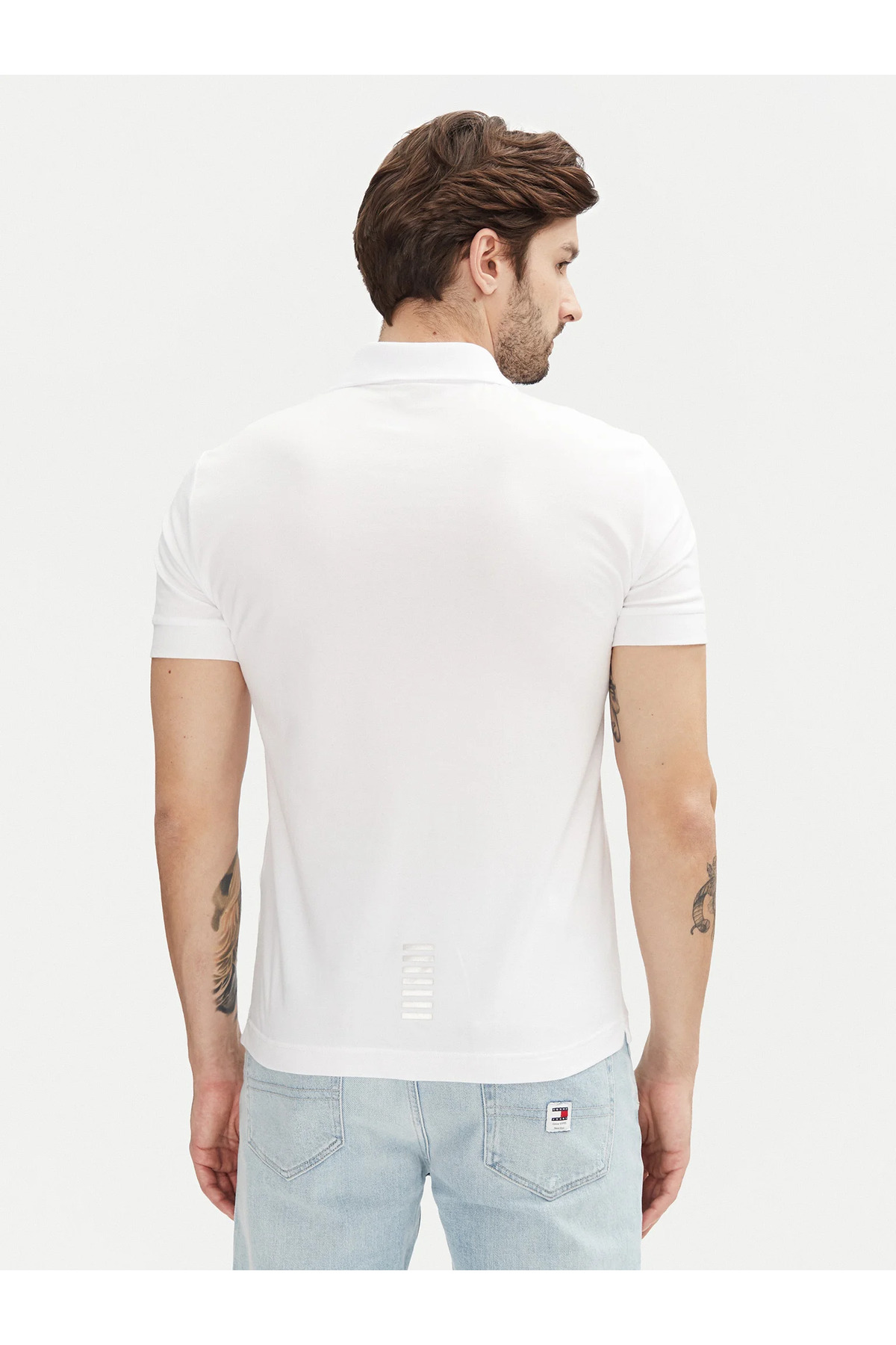 خرید اینترنتی پولو شرت مردانه یقه گرد طرح لوگودار آستین کوتاه سفید نخی 8NPF14 PJVQZ-0100 برند EA7 اورجینال از Wejaar نمایندگی و فروشگاه معتبر ترکیه