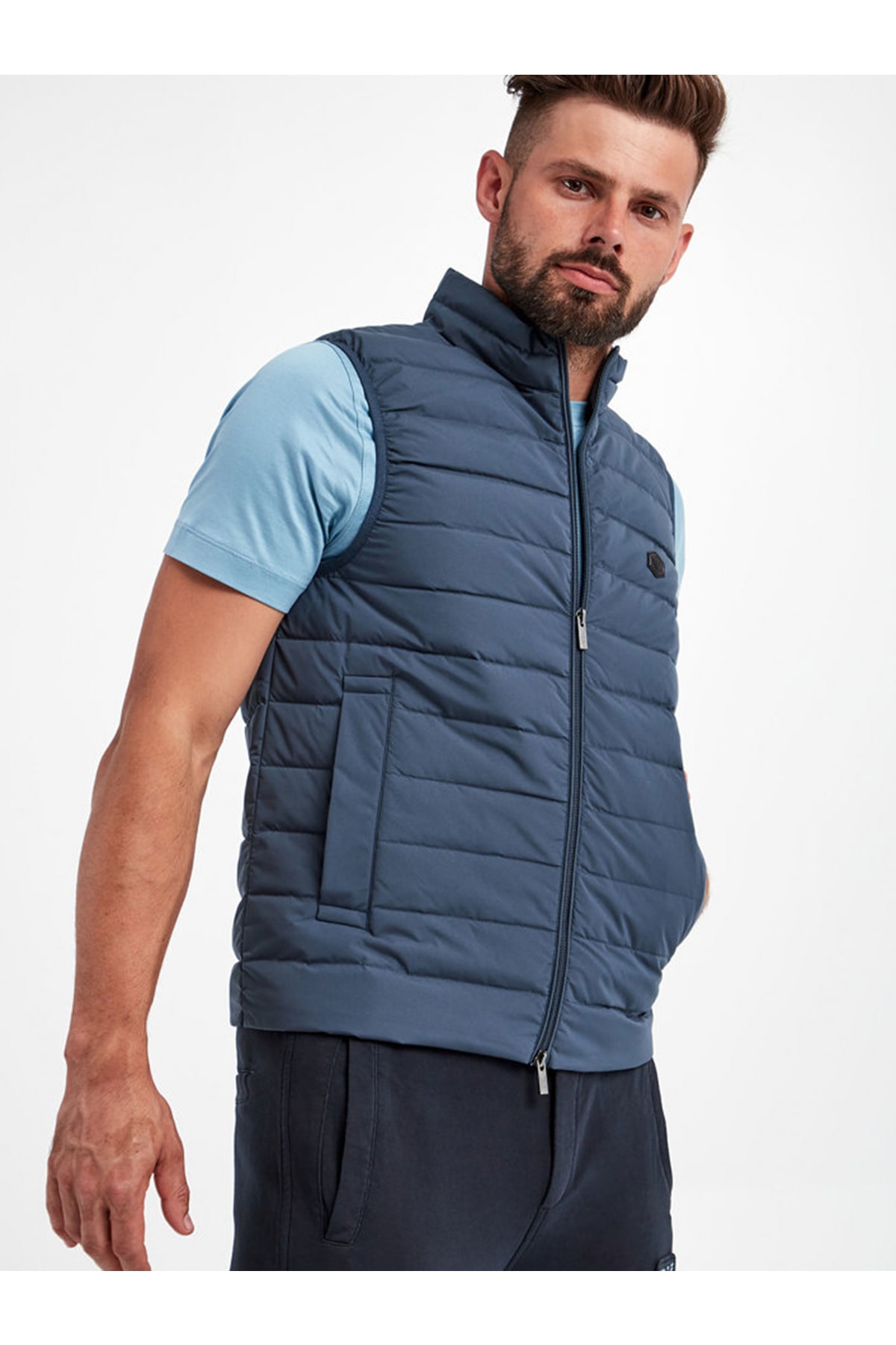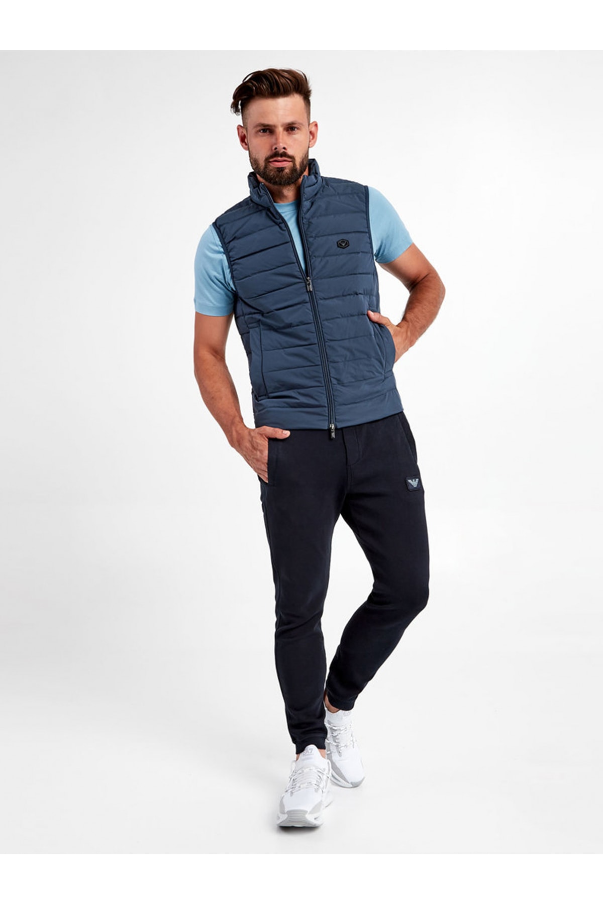 خرید اینترنتی جلیقه ورزشی مردانه یقه ایستاده، عایق زیپدار آبی رنگ با لوگوی برند 8n1bq1 1nlrz-0948 برند امپوریو آرمانی Emporio Armani اورجینال از Wejaar نمایندگی ترکیه