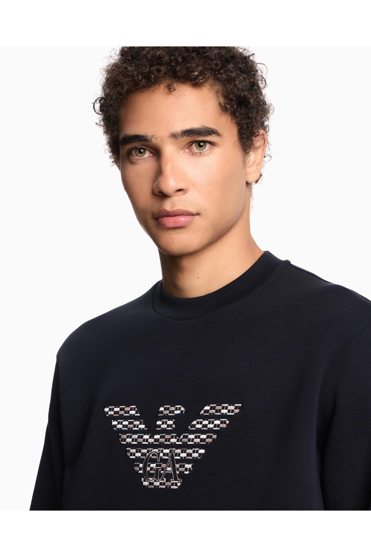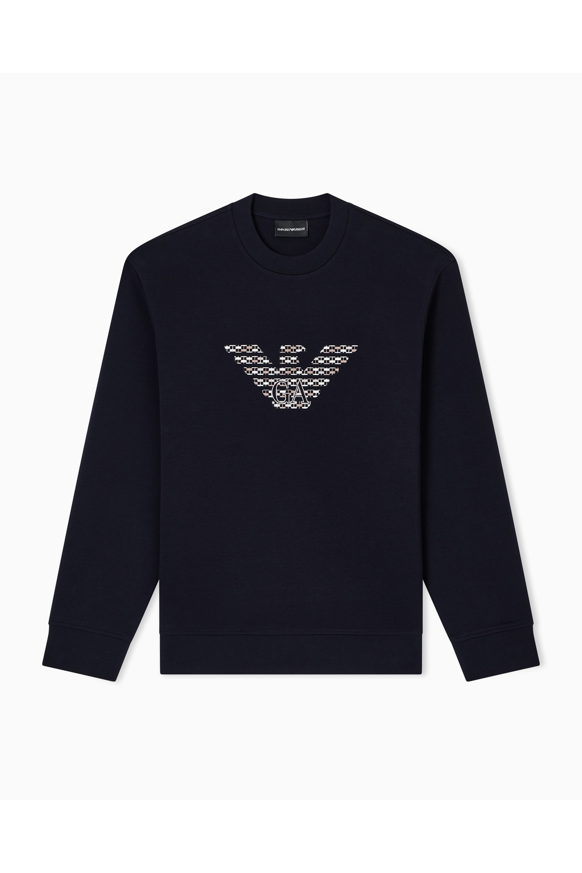 خرید اینترنتی سویشرت مردانه یقه گرد دو تکه سرمهای با لوگوی گلدوزی شده EM002906 AF10013-MB369 برند امپوریو آرمانی Emporio Armani اورجینال از Wejaar نمایندگی و فروشگاه معتبر ترکیه