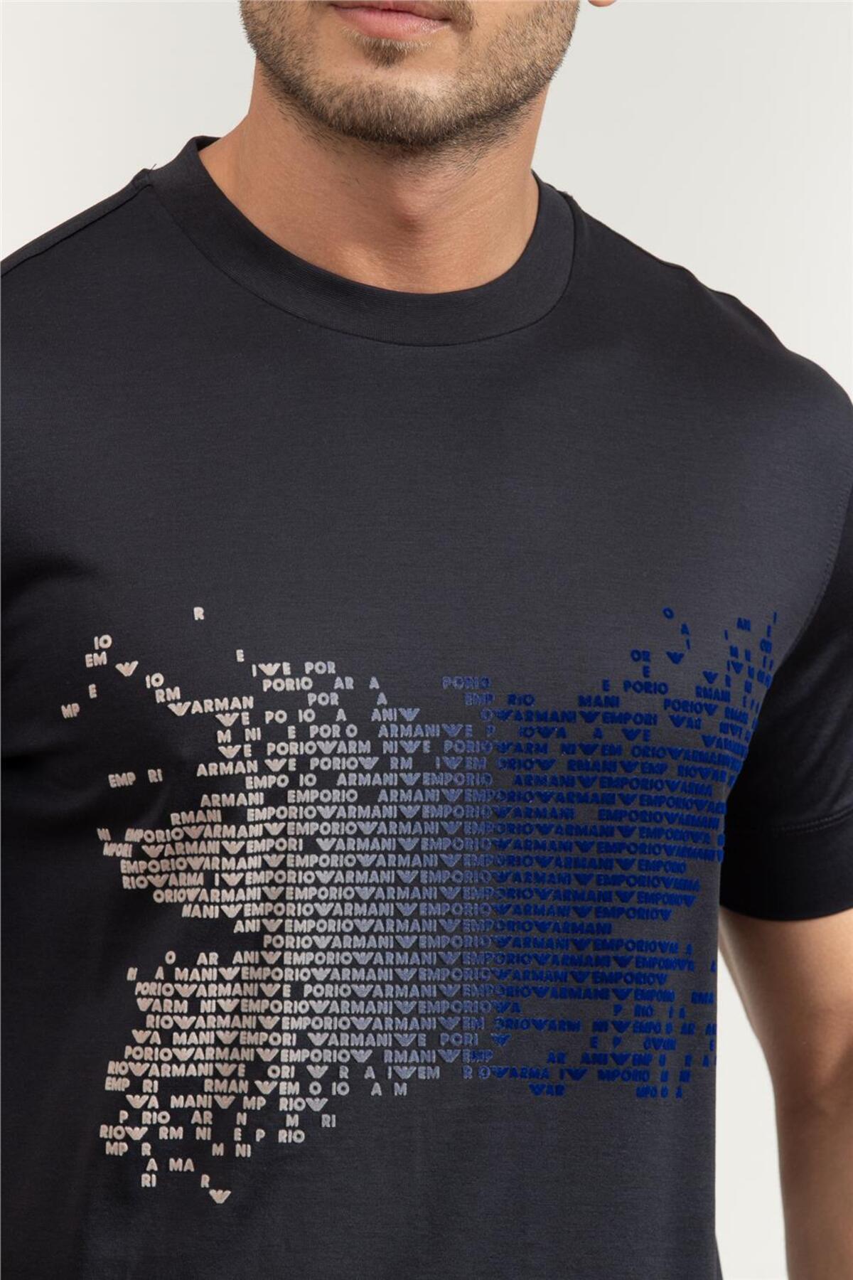 خرید اینترنتی تیشرت آستین کوتاه سرمهای مردانه طرح معمولی، جنس نخ کشی، دارای لوگو، جزئیات EM002946 AF10761-UB1 برند امپوریو آرمانی Emporio Armani اورجینال از Wejaar نمایندگی ترکیه