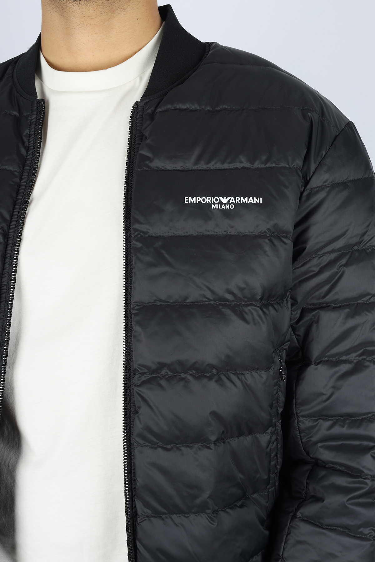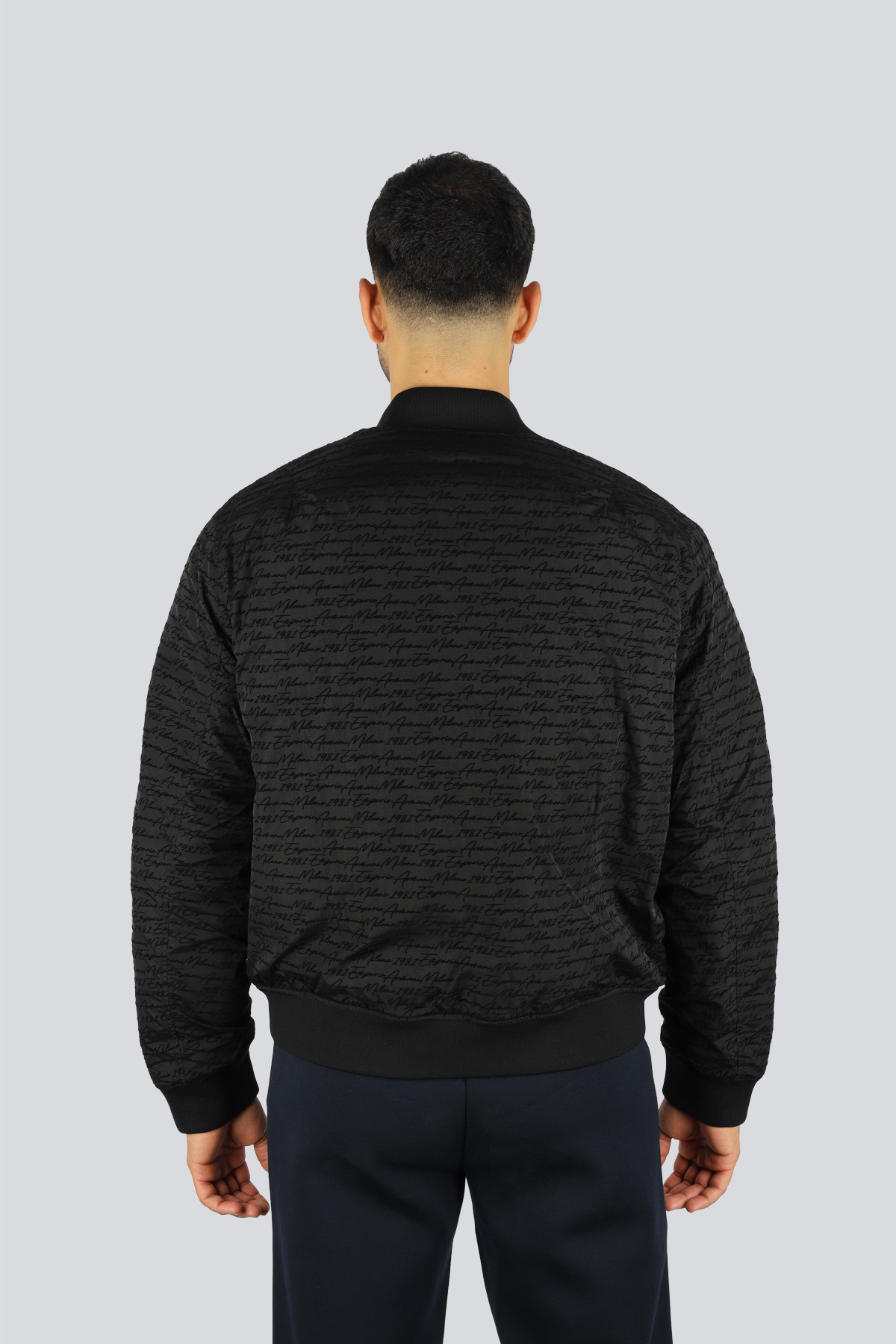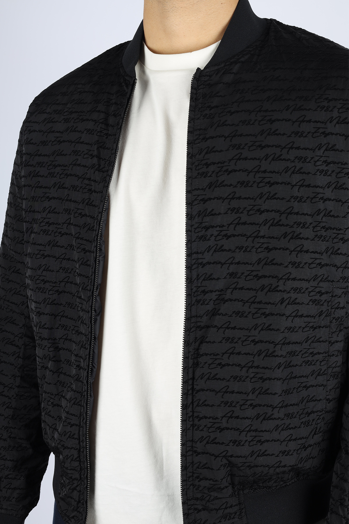 خرید اینترنتی کاپشن مردانه آستین بلند سرمهای یقه ایستاده با نوشته و بسته شدن با زیپ EM003783 A برند امپوریو آرمانی Emporio Armani اورجینال از Wejaar نمایندگی ترکیه