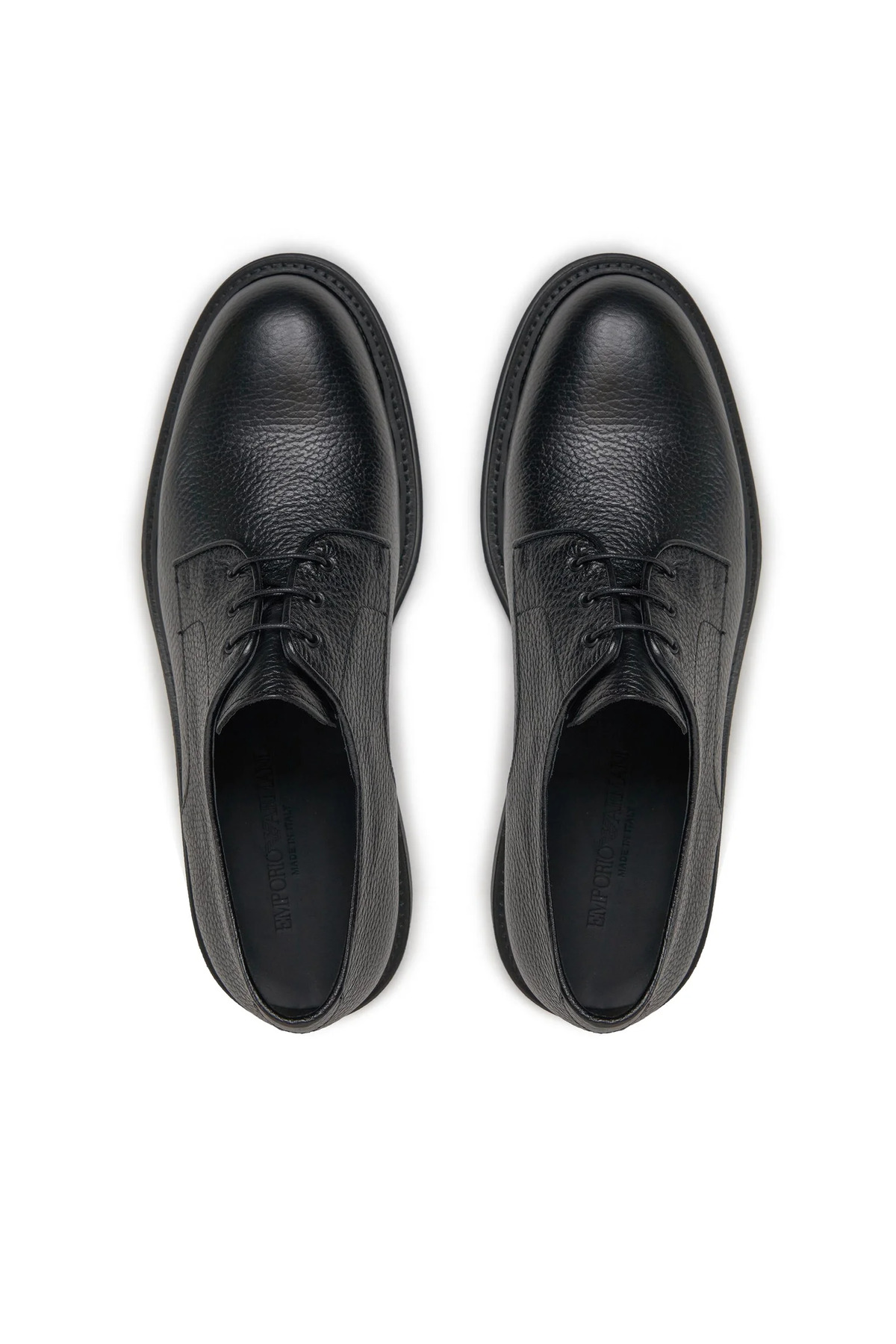 خرید اینترنتی کفش مردانه چرم پبل با پنجه گرد، بند و زیره مشکی طرحدار، مدل X4C653 XF583-000 برند امپوریو آرمانی Emporio Armani اورجینال از Wejaar نمایندگی ترکیه