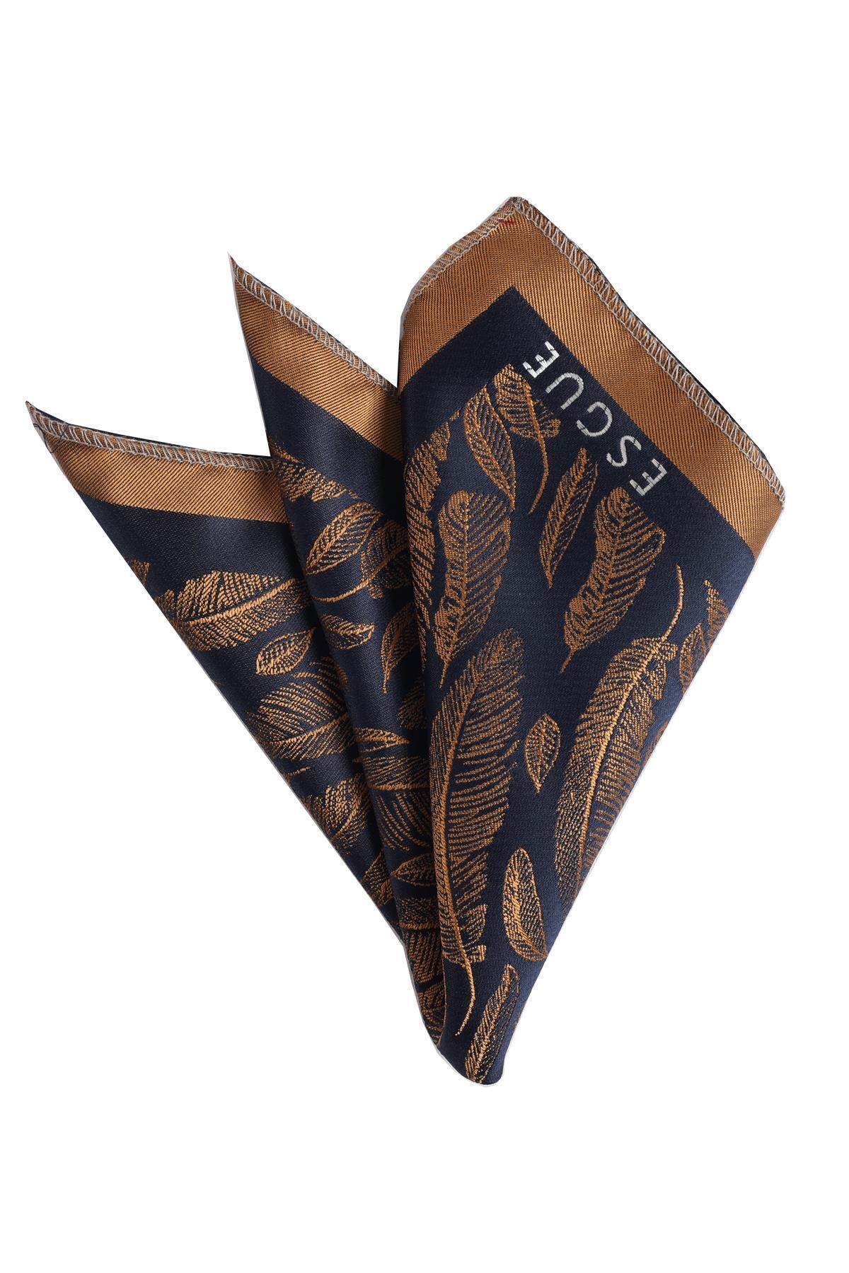 دستمال جیبی طرحدار طلایی و مشکی دستساز ۷.۵ سانتیمتری مردانه طرح دار | Esgue ESG115KRM1087